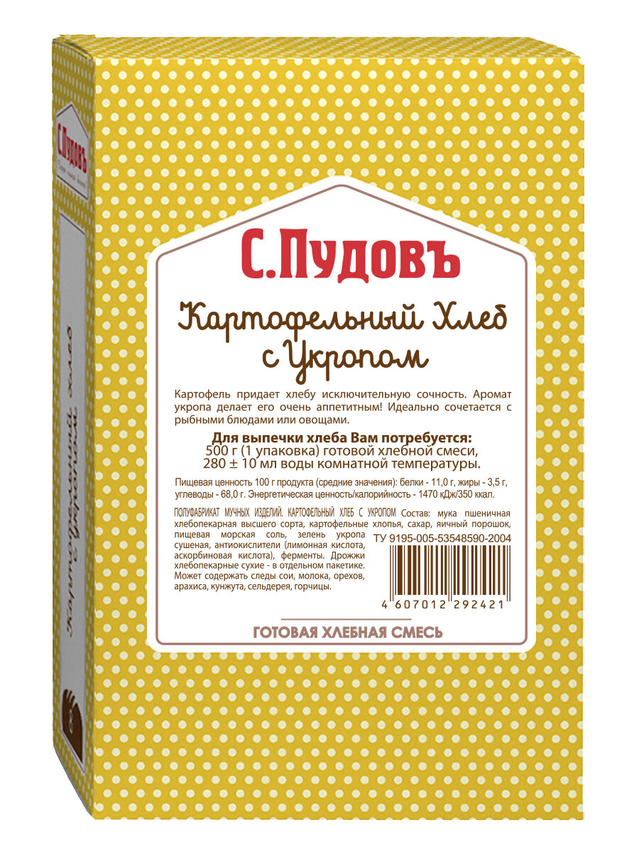 Смесь для выпечки хлеба "Картофельный хлеб с укропом" С.Пудовъ, 500 г интересное: