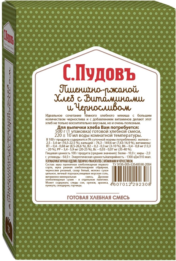 Смесь для выпечки хлеба "Пшенично-ржаной хлеб с витаминами и черносливом" С.Пудовъ , 500 г интересное: