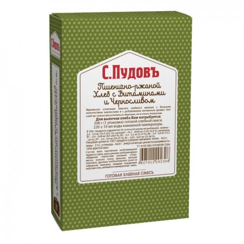 Ниже Вы можете прочитать отзывы на Смесь для выпечки хлеба "Пшенично-ржаной хлеб с витаминами и черносливом" С.Пудовъ , 500 г, ознакомится с подробными характеристиками, посмотреть интересные обзоры и фотографии на Смесь для выпечки хлеба "Пшенично-ржаной хлеб с витаминами и черносливом" С.Пудовъ , 500 г.