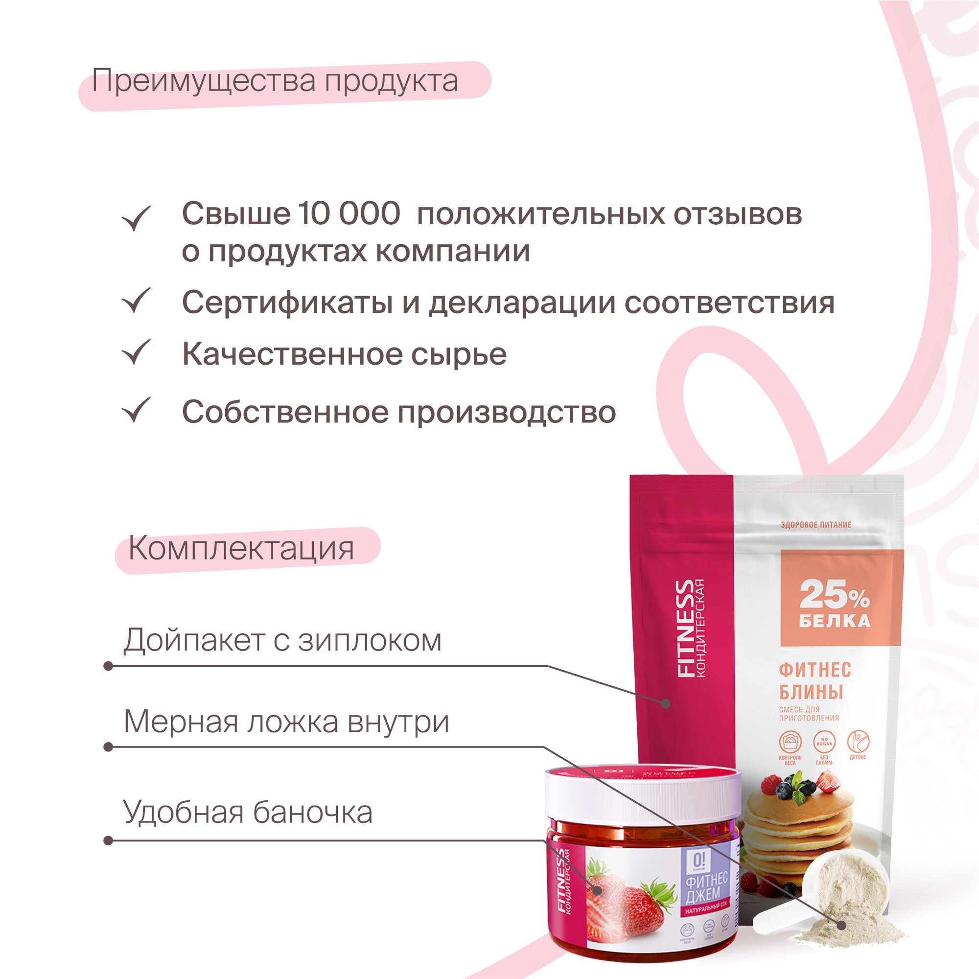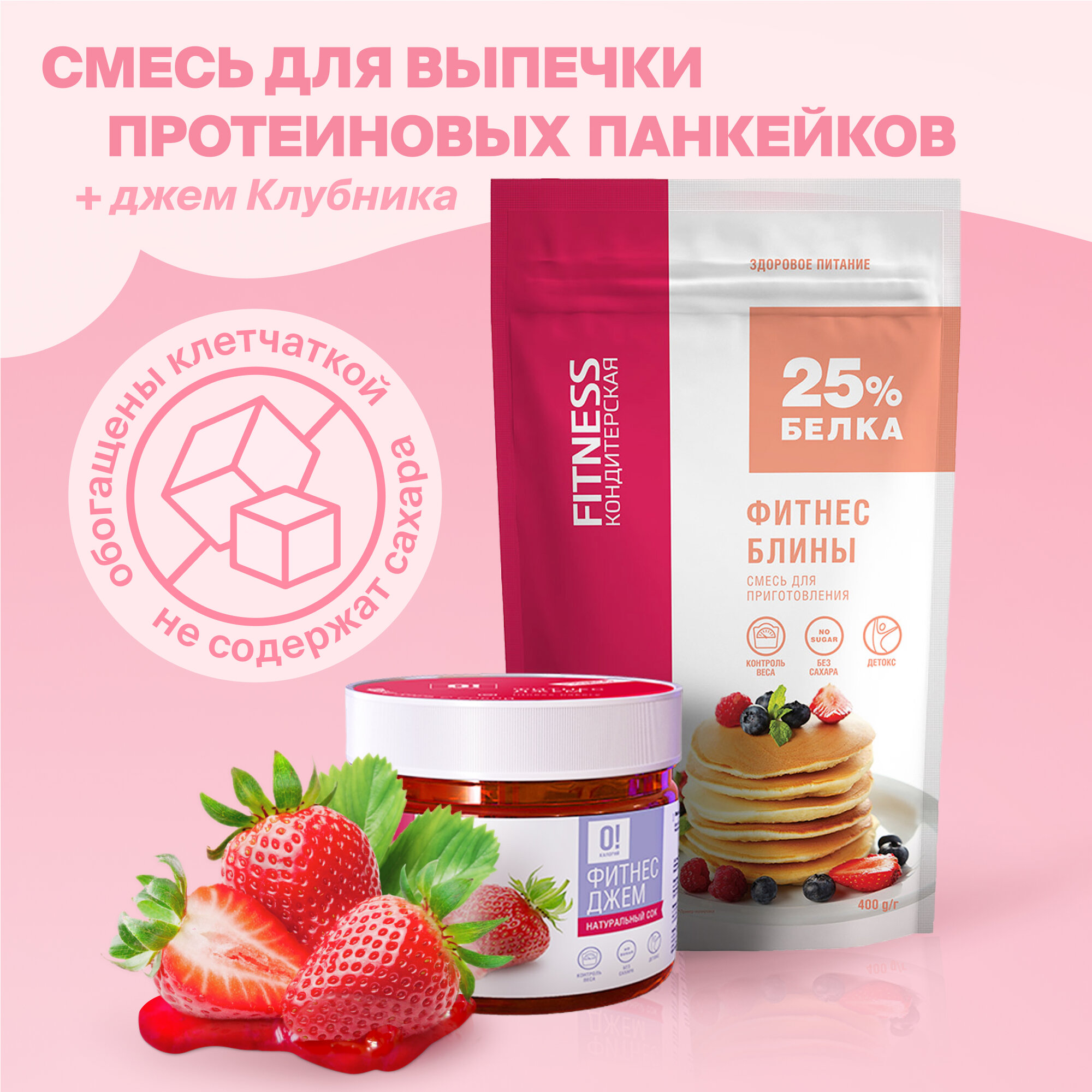 Протеиновая смесь для выпечки блинов без сахара Fitness кондитерская + Джем 0! Калорий: Клубника интересное: