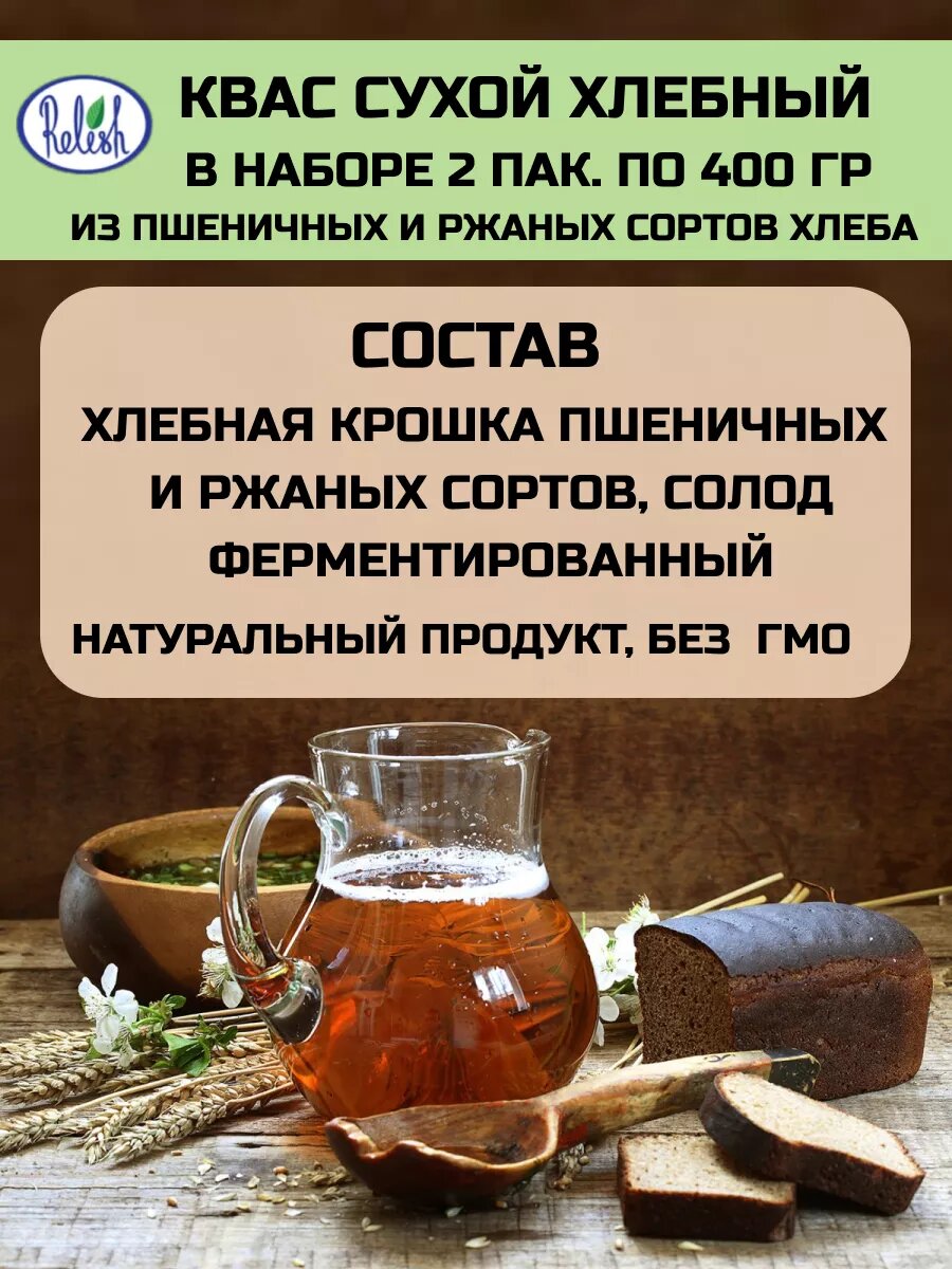 Купить Хлебный квас Relish сухой из пшеничных и ржаных сортов 2 пакета по 400 г