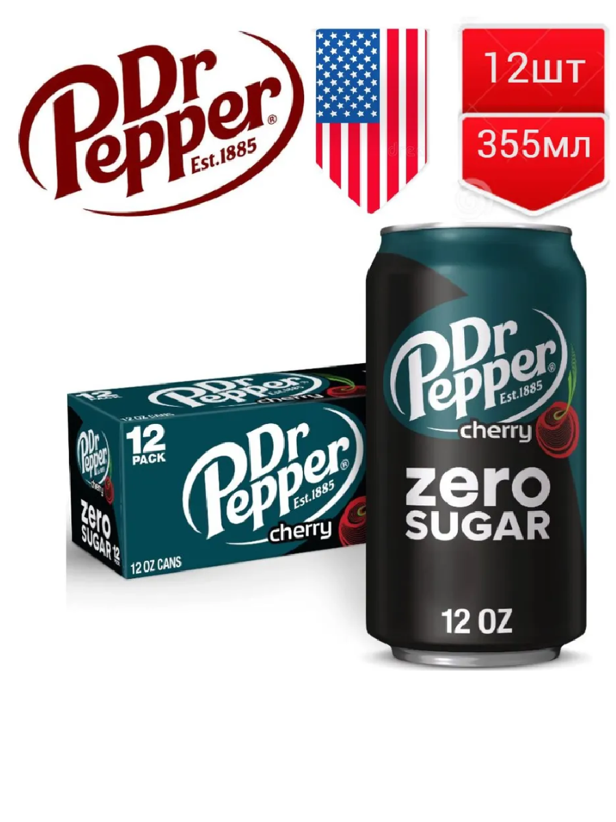 Газированный напиток Dr Pepper Cherry Zero со вкусом вишня (без сахара) (США), 355 мл (12 шт) интересное: