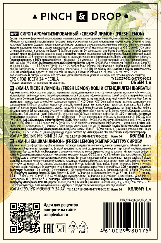 СохранитьСироп «Лимон» 1000 мл Pinch&Drop, 5030612 интересное: