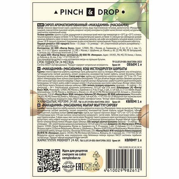 Купить Сироп «Макадамия» Pinch&Drop; стекло; 1л; D=85, H=330мм