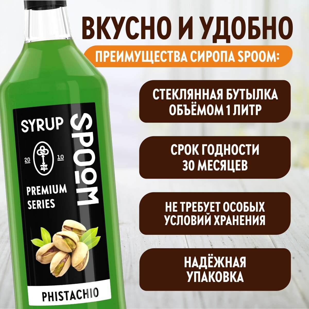 Ниже Вы можете прочитать отзывы на Сироп SPOOM Фисташка 1 л, ознакомится с подробными характеристиками, посмотреть интересные обзоры и фотографии на Сироп SPOOM Фисташка 1 л.