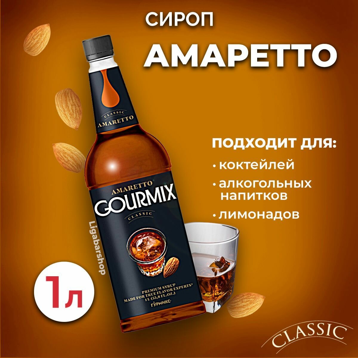 Купить Сироп Gourmix Амаретто 1л ПЭТ. Для лимонада, кофе и коктейлей. Топпинг Гурмикс для десерта. Для кофеен и для дома.