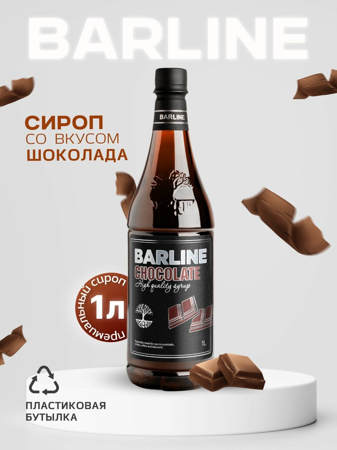 Купить Сироп Barline Шоколад (Chocolate), 1 л, для кофе, чая, коктейлей и десертов, пластиковая бутылка, Барлайн