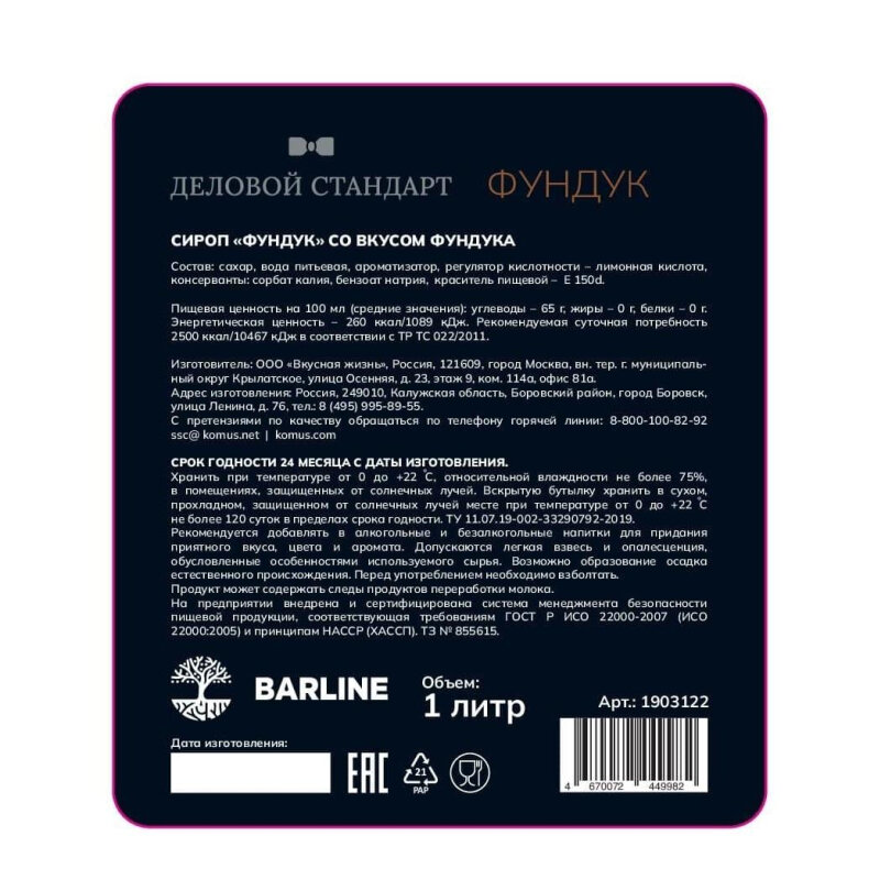 СохранитьСироп Barline Фундук (Hazelnut), 1 л, для кофе, чая, коктейлей и десертов, стеклянная бутылка c рассекателем, Барлайн интересное: