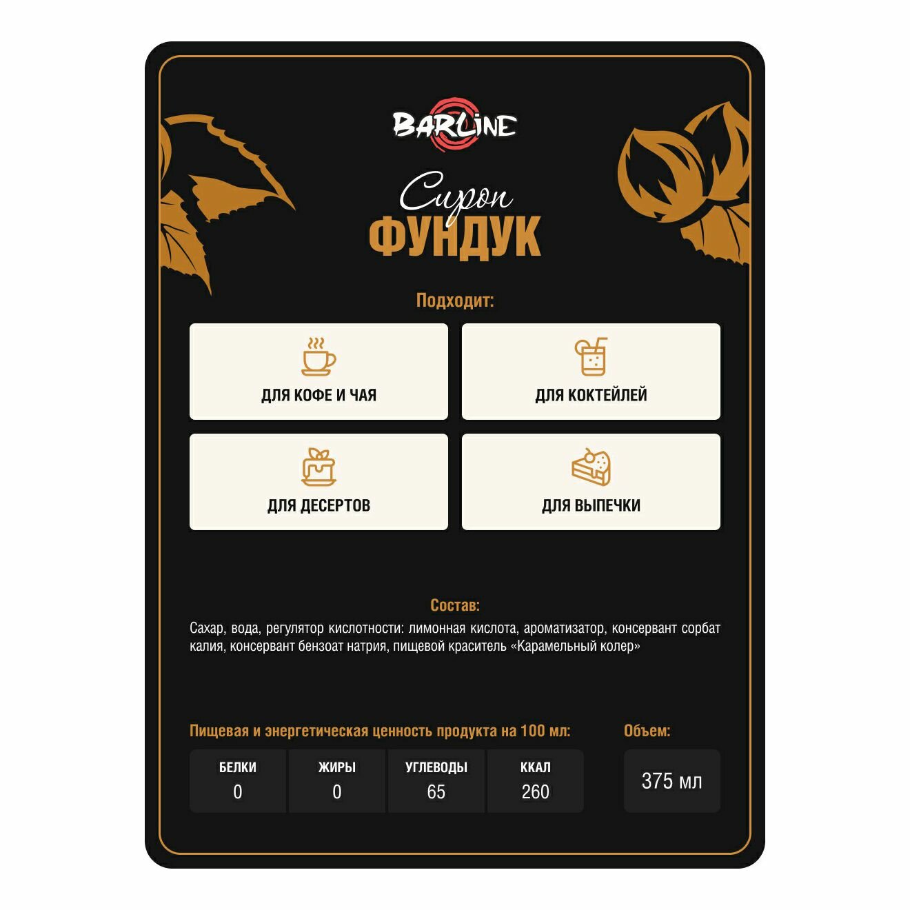 Купить Сироп Barline Фундук (Hazelnut), 375 мл, для кофе, чая, коктейлей и десертов, стеклянная бутылка, Барлайн