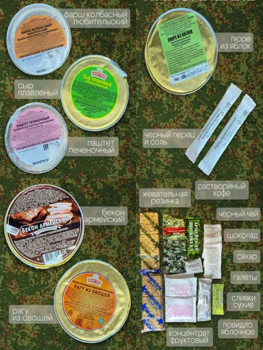 Сухой паек армейский ИРП 2,1 кг меню №5 "Пятница" интересное: