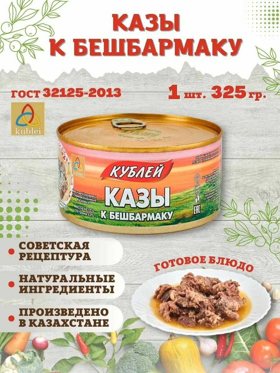 Мясные консервы, казы к бешбармаку, готовое блюдо, 325 грамм, 1 шт интересное: