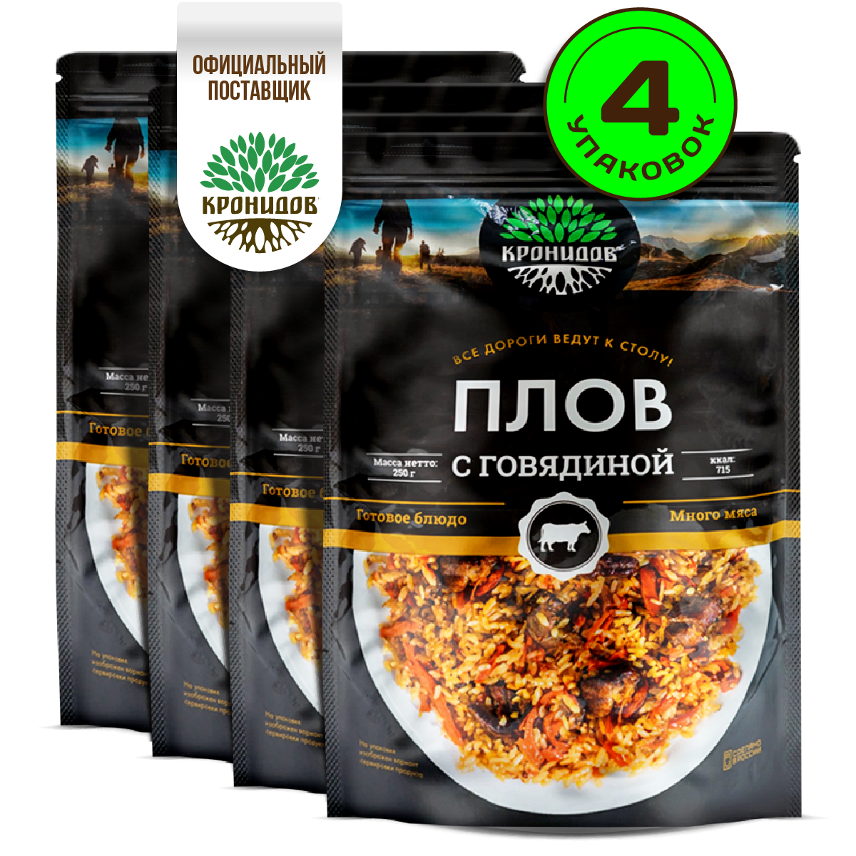 Кронидов Плов с говядиной Готовое блюдо в фольге. Консерва натуральная Набор 4 шт. по 250 г