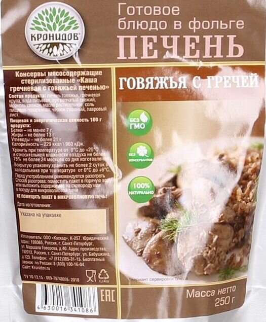 Консервы из субпродуктов стерилизованные. "Каша гречневая с говяжьей печенью", 250 г. (Кронидов) интересное: