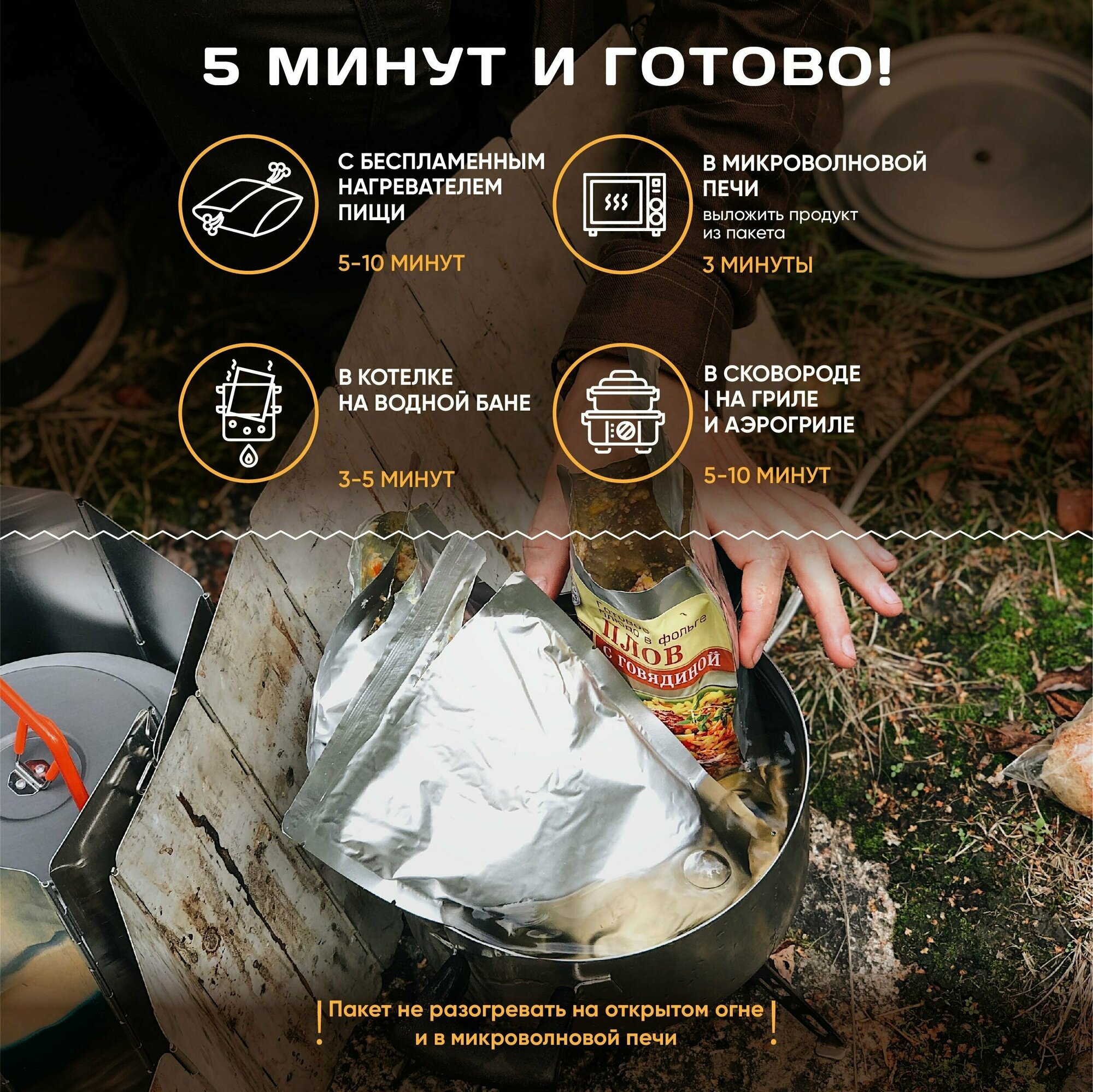 Кронидов Набор из 4 готовых блюд в фольге + Подарок БНП 1 шт. Греча/ Рис/ Плов с говядиной/ Суп куриный по-домашнему
