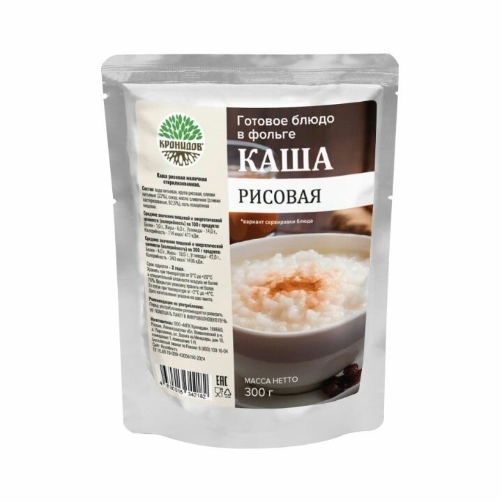 Кронидов Каша молочная рисовая Готовое блюдо в реторт-пакете Консервы натуральные 1 шт 300 г