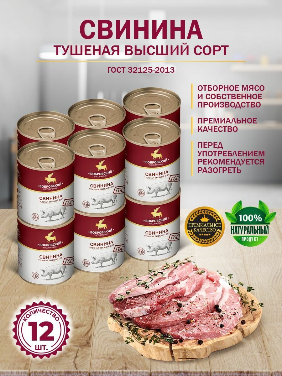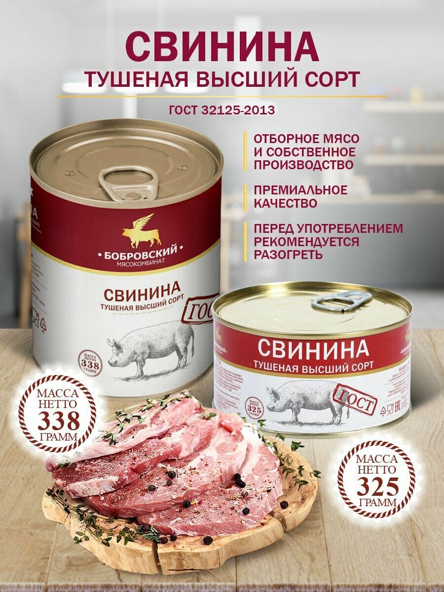 Свинина Тушеная Высший Сорт ГОСТ МКБ 338 гр. - 12 шт. интересное: