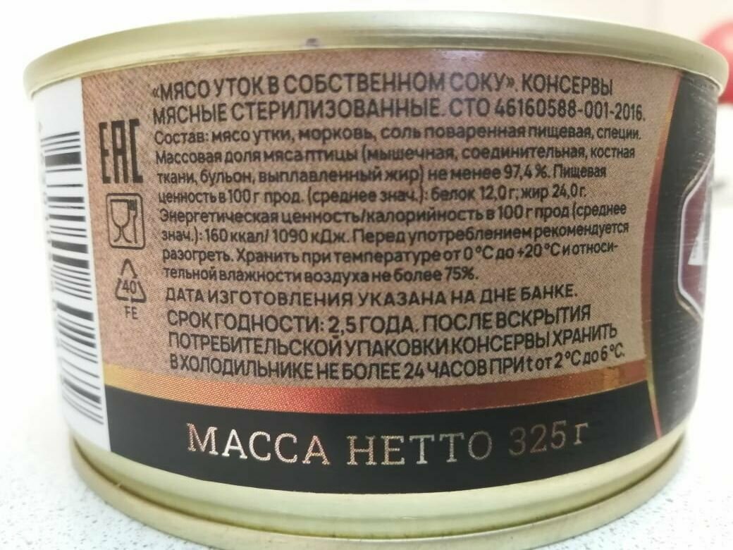 Мясо утки в собственном соку ж/б 325 гр (упаковка 4шт) интересное: