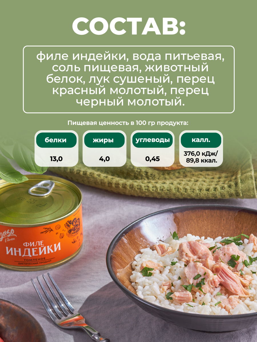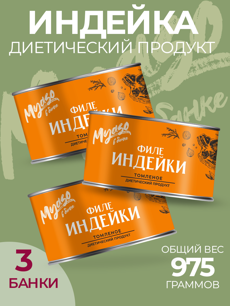 Тушенка, консервы мясные, Филе индейки томленое 325 гр. Мясо в банке-3 шт интересное: