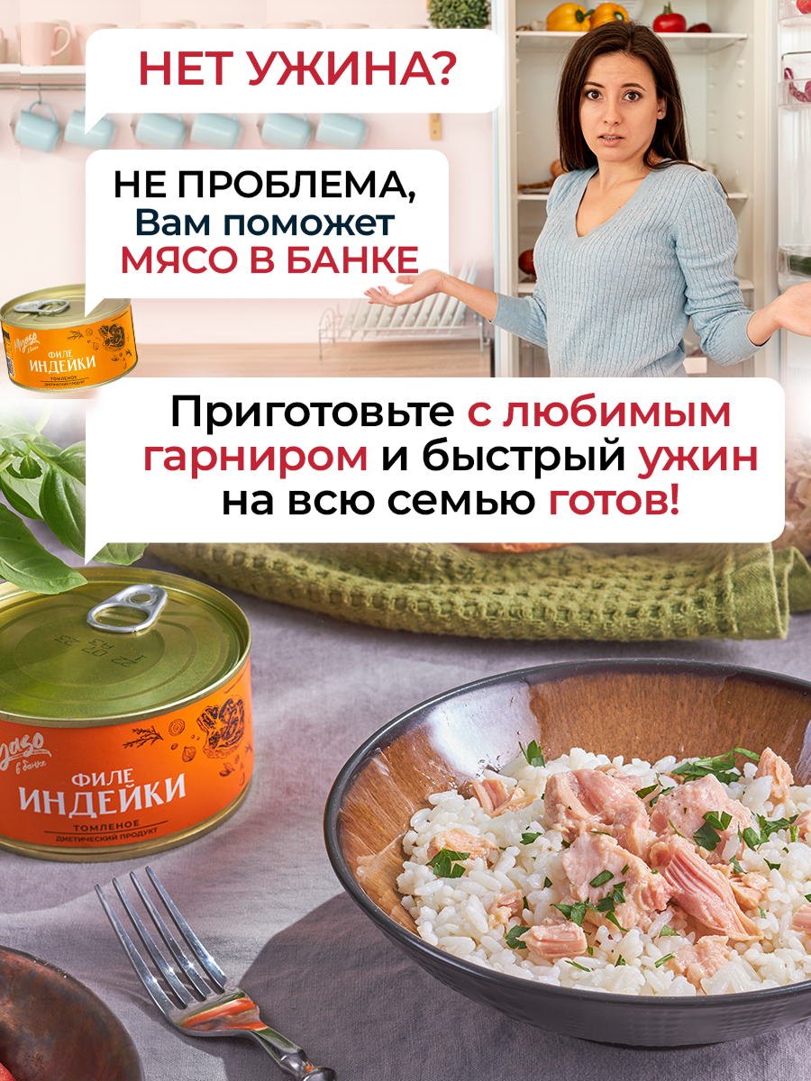 Тушенка, консервы мясные, Филе индейки томленое 325 гр. Мясо в банке-3 шт