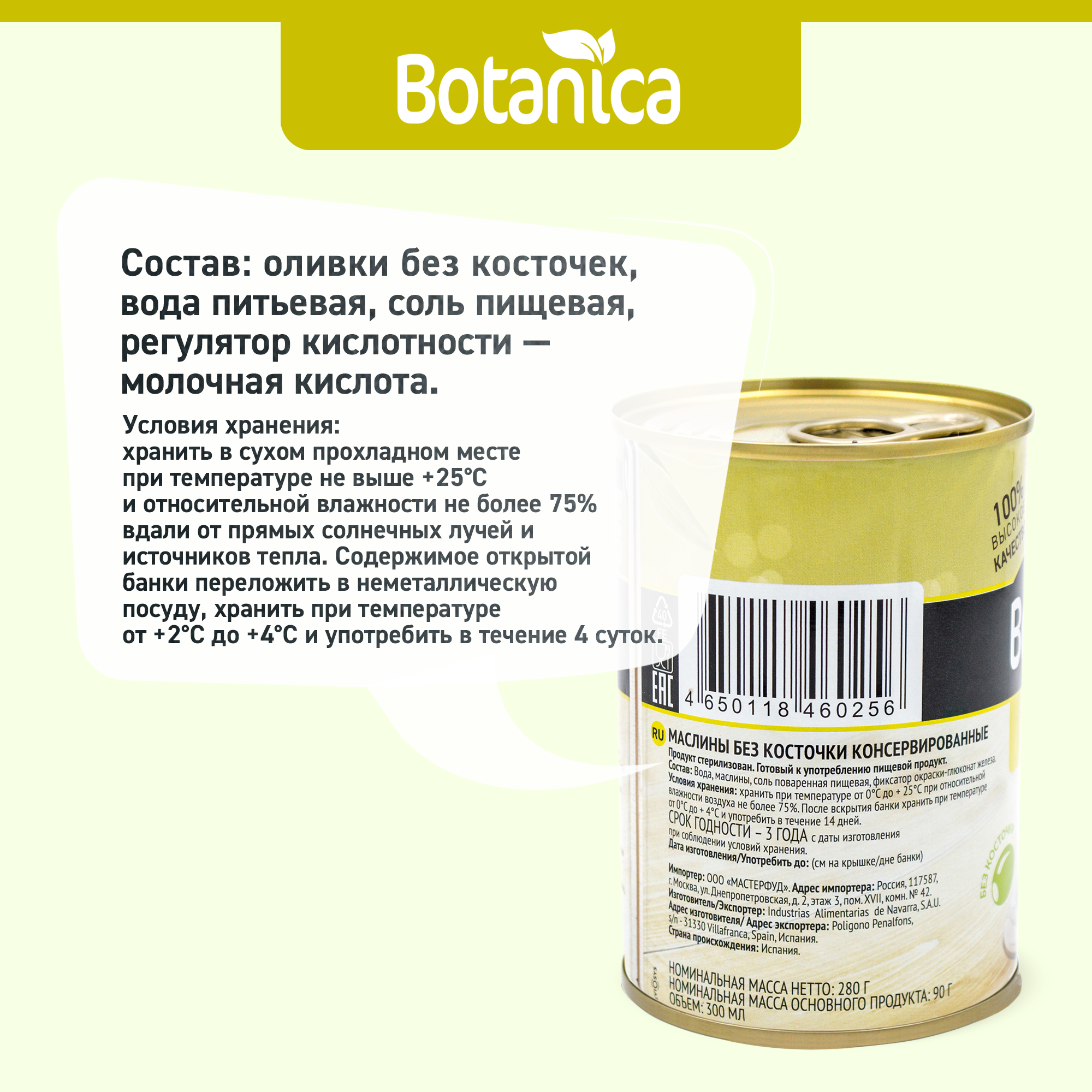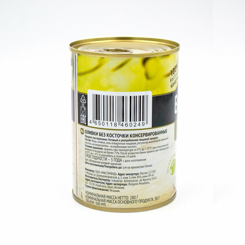 | Состав | вода, оливки, соль пищевая поваренная, регулятор кислотности-лимонная кислота |