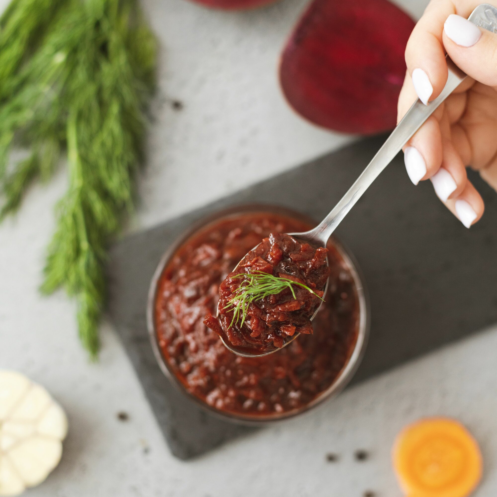 | Состав | Свекла, томаты, лук репчатый, морковь, чеснок, перец острый, сахар, соль, лавровый лист, перец душистый, уксусная кислота. |