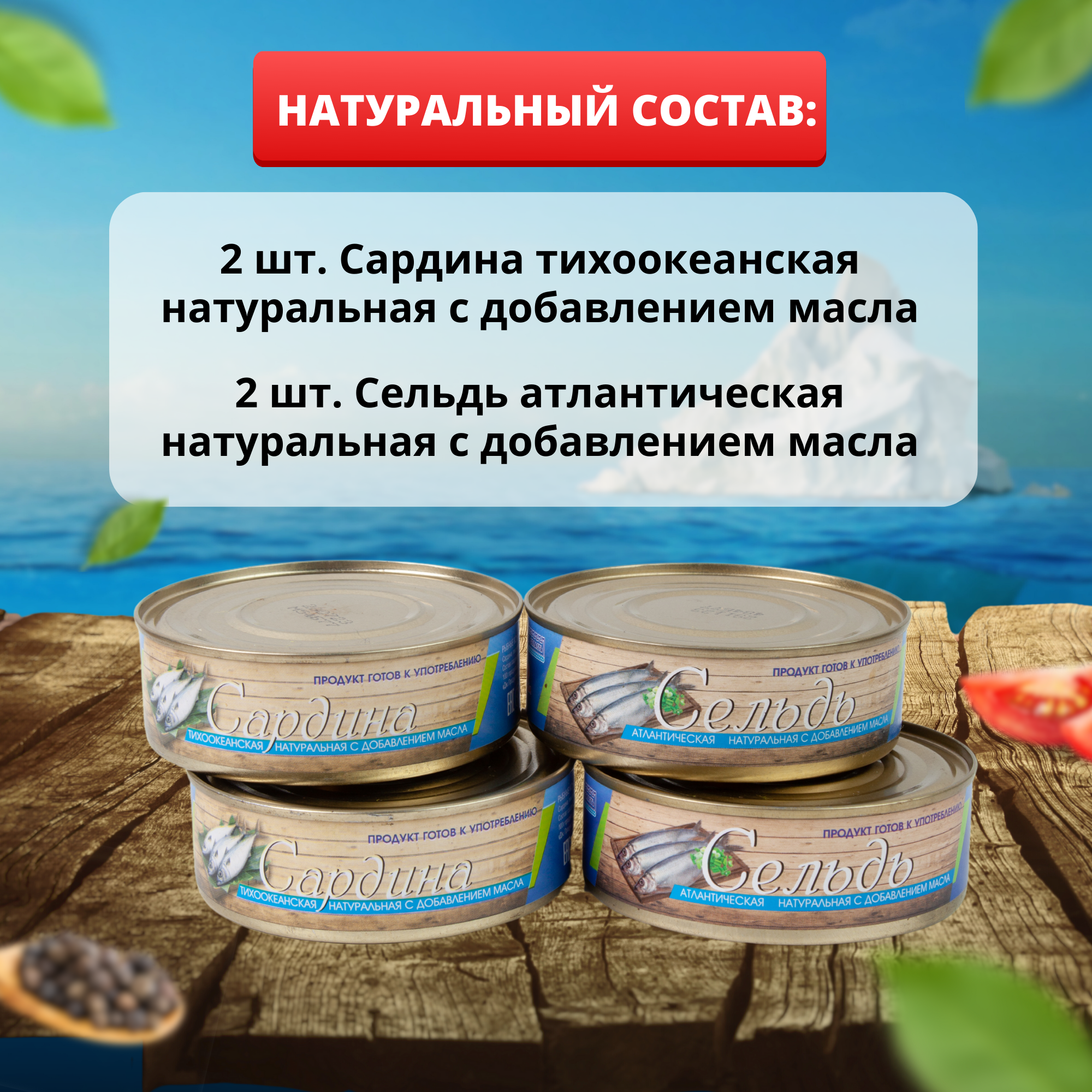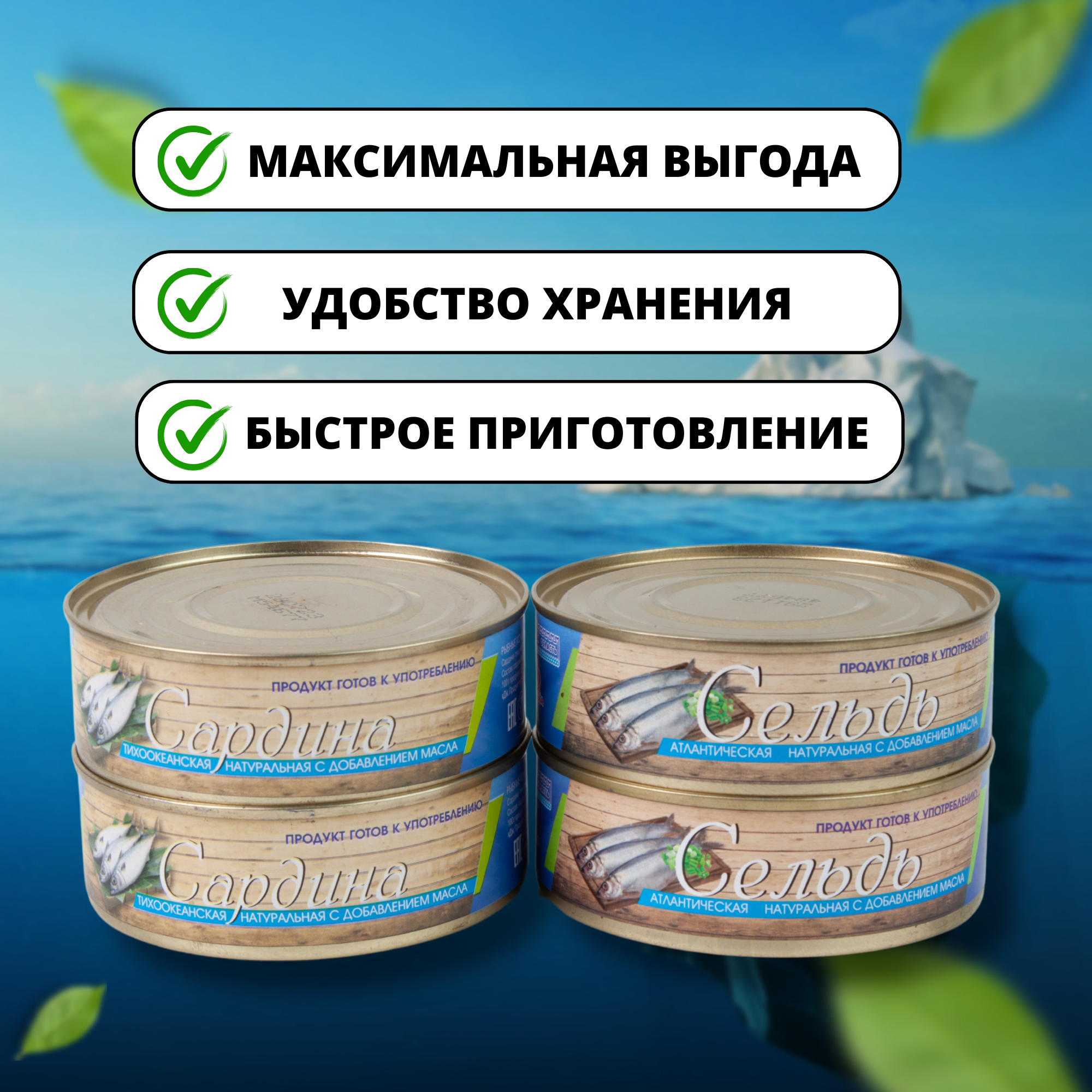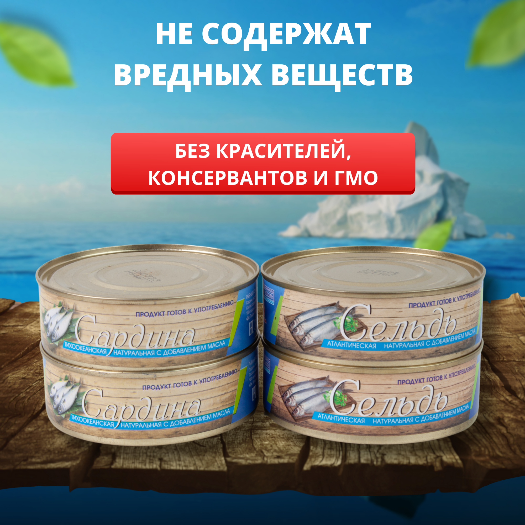 Рыбные консервы, сельдь и сардина 4 банки по 240 грамм интересное: