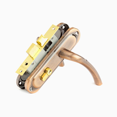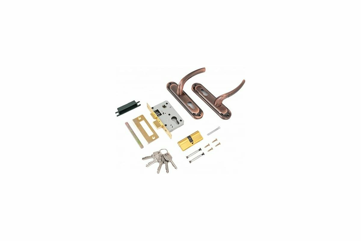 Врезной замок для деревянных дверей с ручками (левых и правых) Стандарт 132/50 AC старая медь интересное: