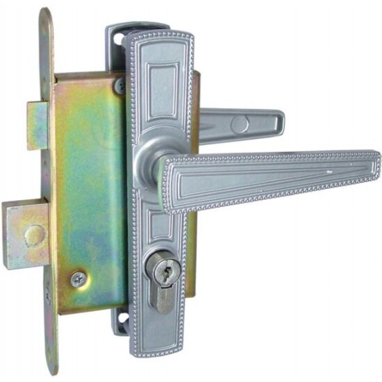 Замок врезной цилиндровый с защёлкой в комплекте с ручкой Зенит (замки) зенит ЗВ4-3.01 (серебро), 4 кл. интересное: