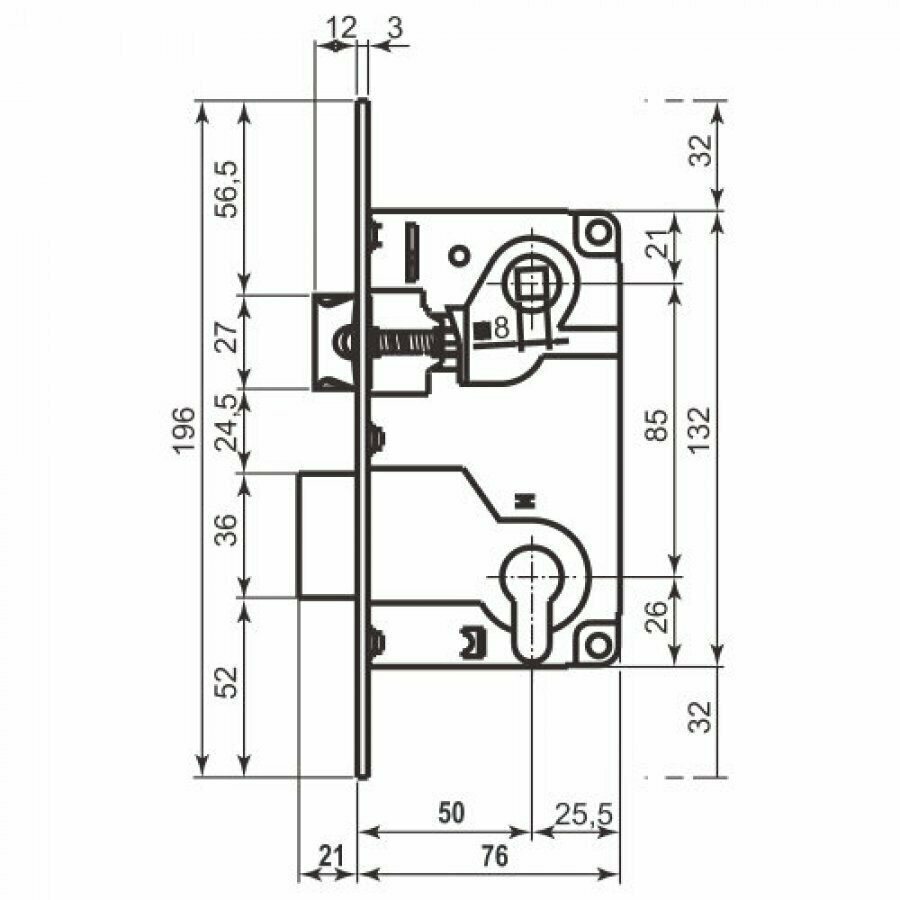 Замок врезной магнитный 25М-85 мм, чёрный Нора-М 18525