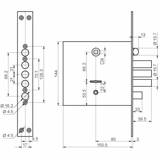 Замок врезной BORDER, 77743, ЗВ 9-8МК4/15 ЛП8, б/о, округленная планка, универсальный