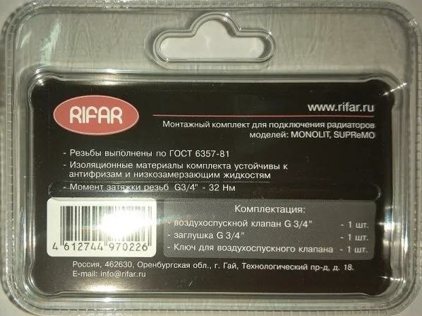 Комплект для подключения радиатора RIFAR MONOLIT/SUPReMO 3/4 R.Ad.G34MS интересное: