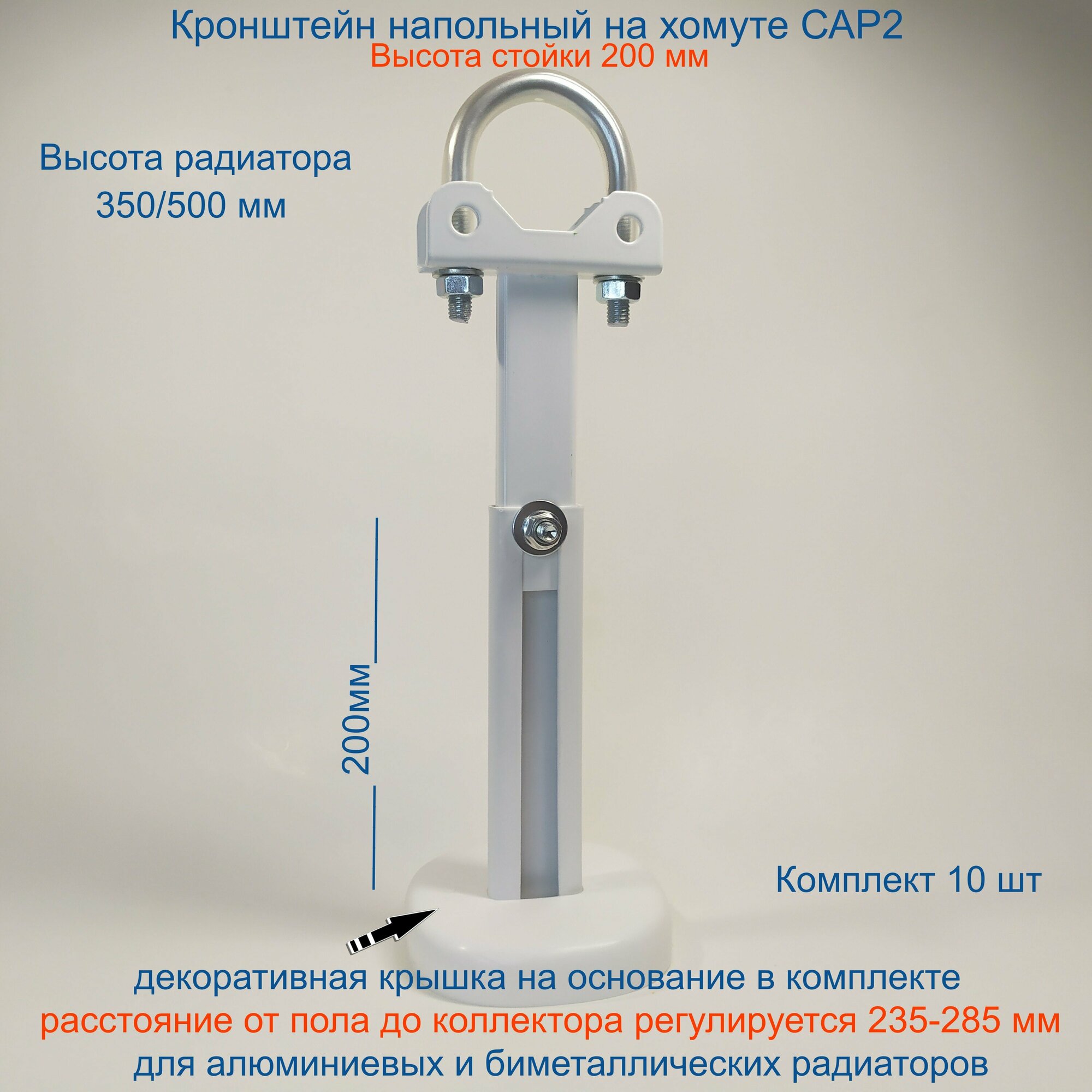 Купить Кронштейн напольный регулируемый Кайрос САР2 на хомуте (стойка 200 мм) для алюм и биметалл радиаторов, комплект 10 шт