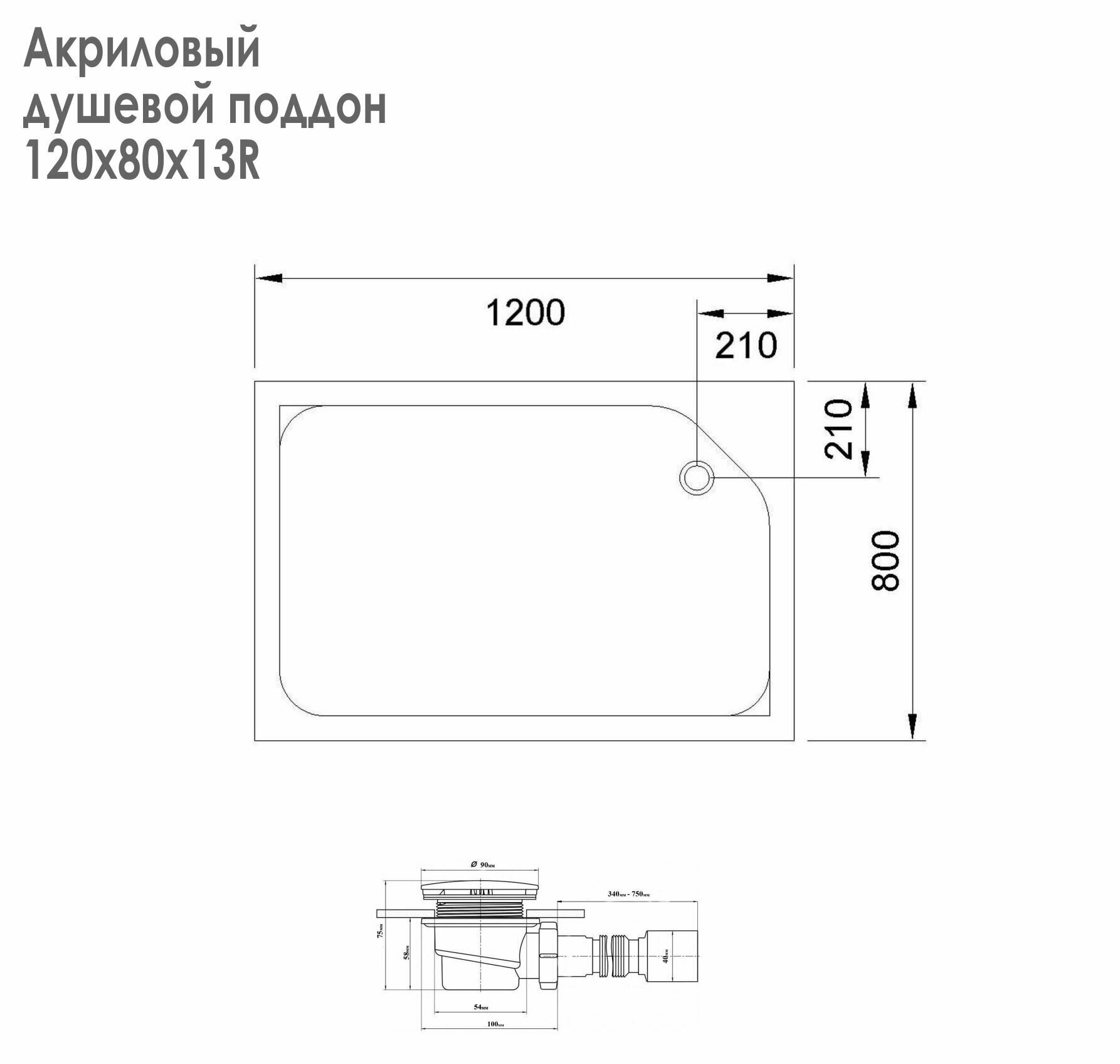 Душевой поддон RB 8120BK 120X80X45 правый в сборе с карнизом