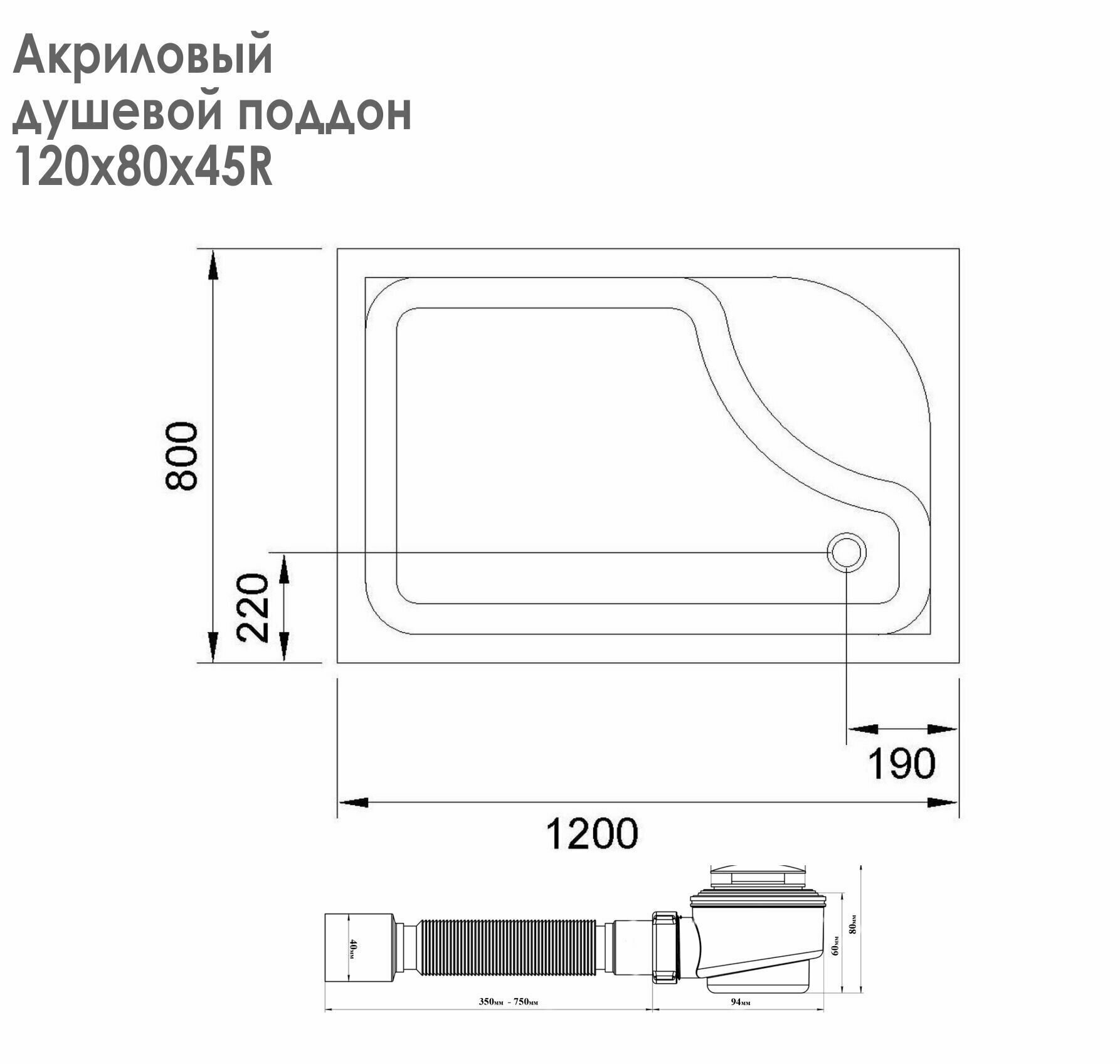 Душевой поддон RB 8120BK 120X80X45 правый