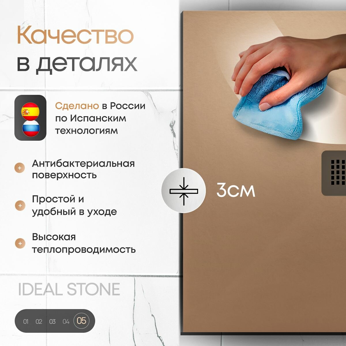 СохранитьПоддон для душа из искусственного камня IDEAL STONE 80/80 бежевый интересное: