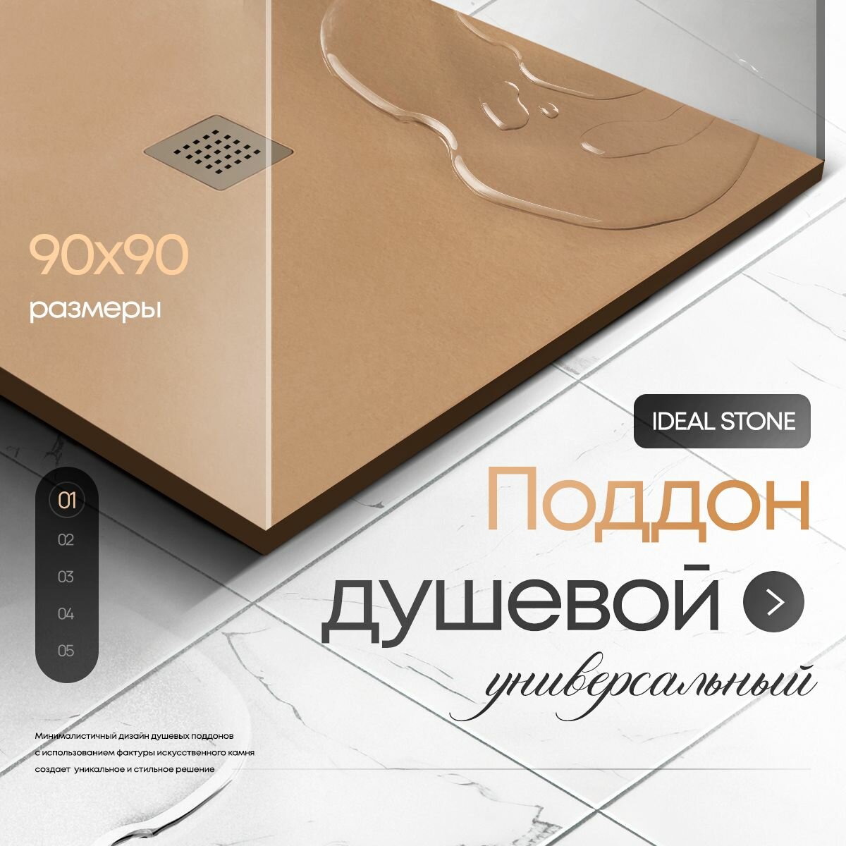 СохранитьПоддон для душа из искусственного камня IDEAL STONE 90/90 бежевый интересное: