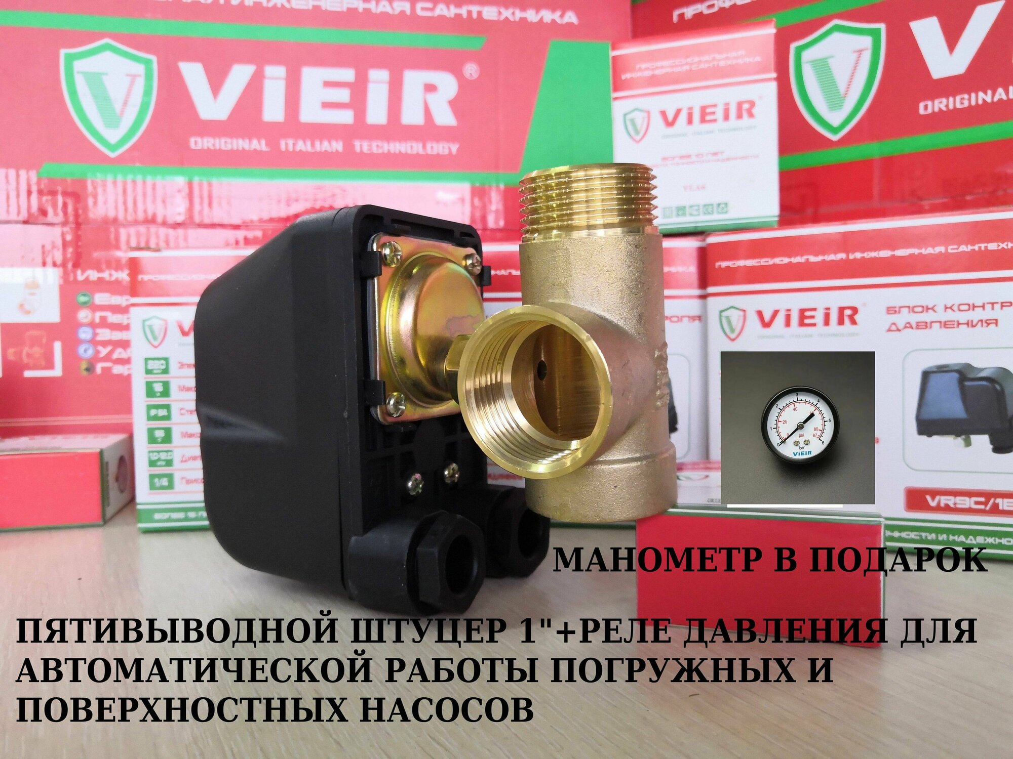 Набор для автоматической работы погружных и поверхностных насосов (5-ти выводной штуцер + манометр + реле давления)