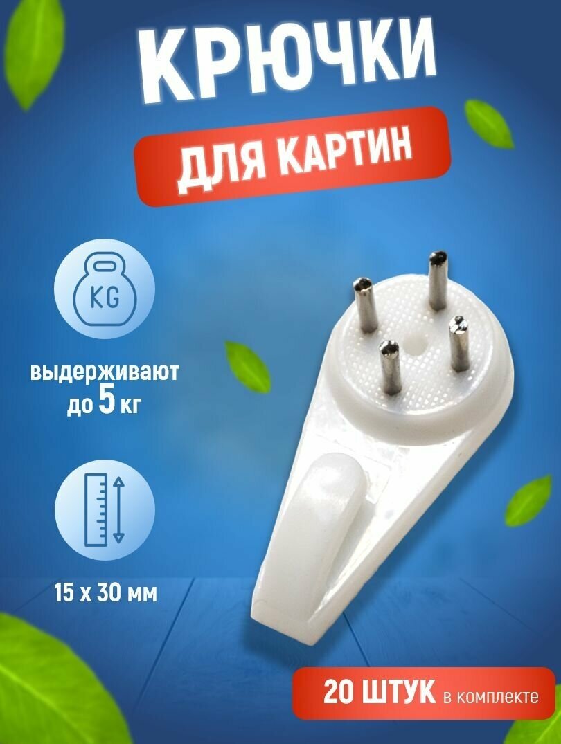 Крючок усиленный настенный без сверления для картин, постеров, фото, ключей, часов 20шт интересное: