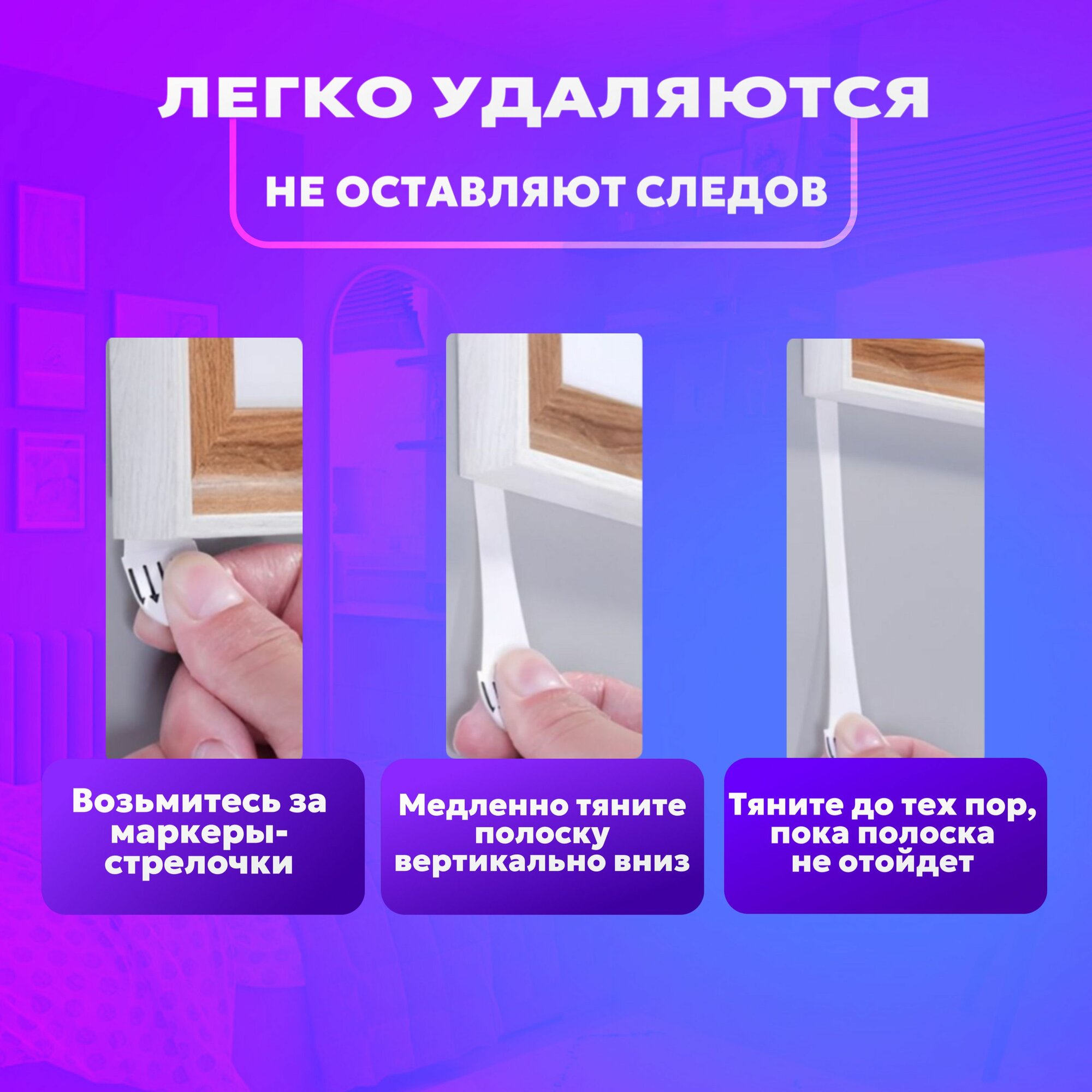 Купить Крепление для картин и фоторамок без сверления / Клейкие двусторонние полосы с системой бесследного удаления / 12 шт.