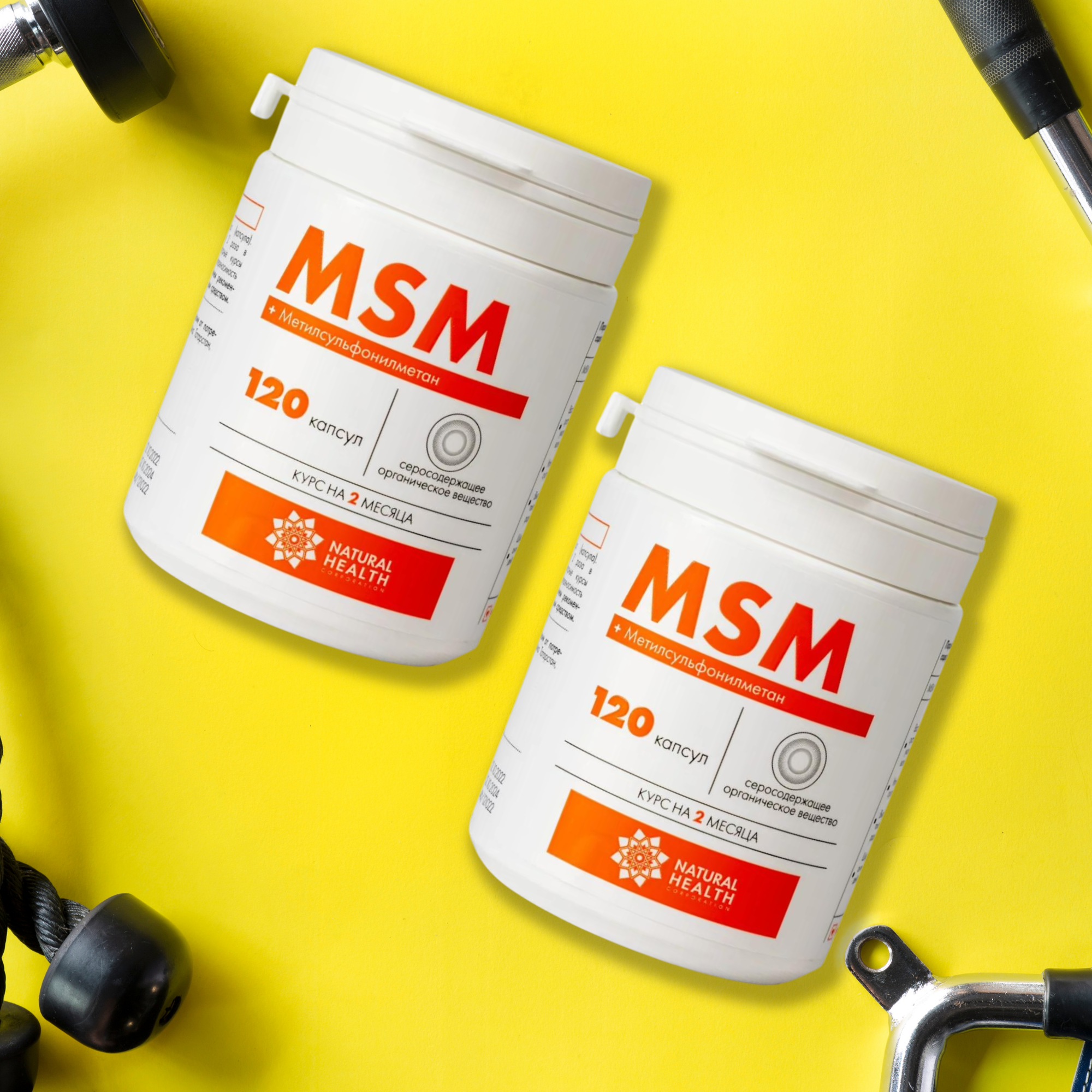 MSM витамин для суставов, хрящей, связок Natural Health метилсульфонилметан, серосодержащее вещество, 120 капсул