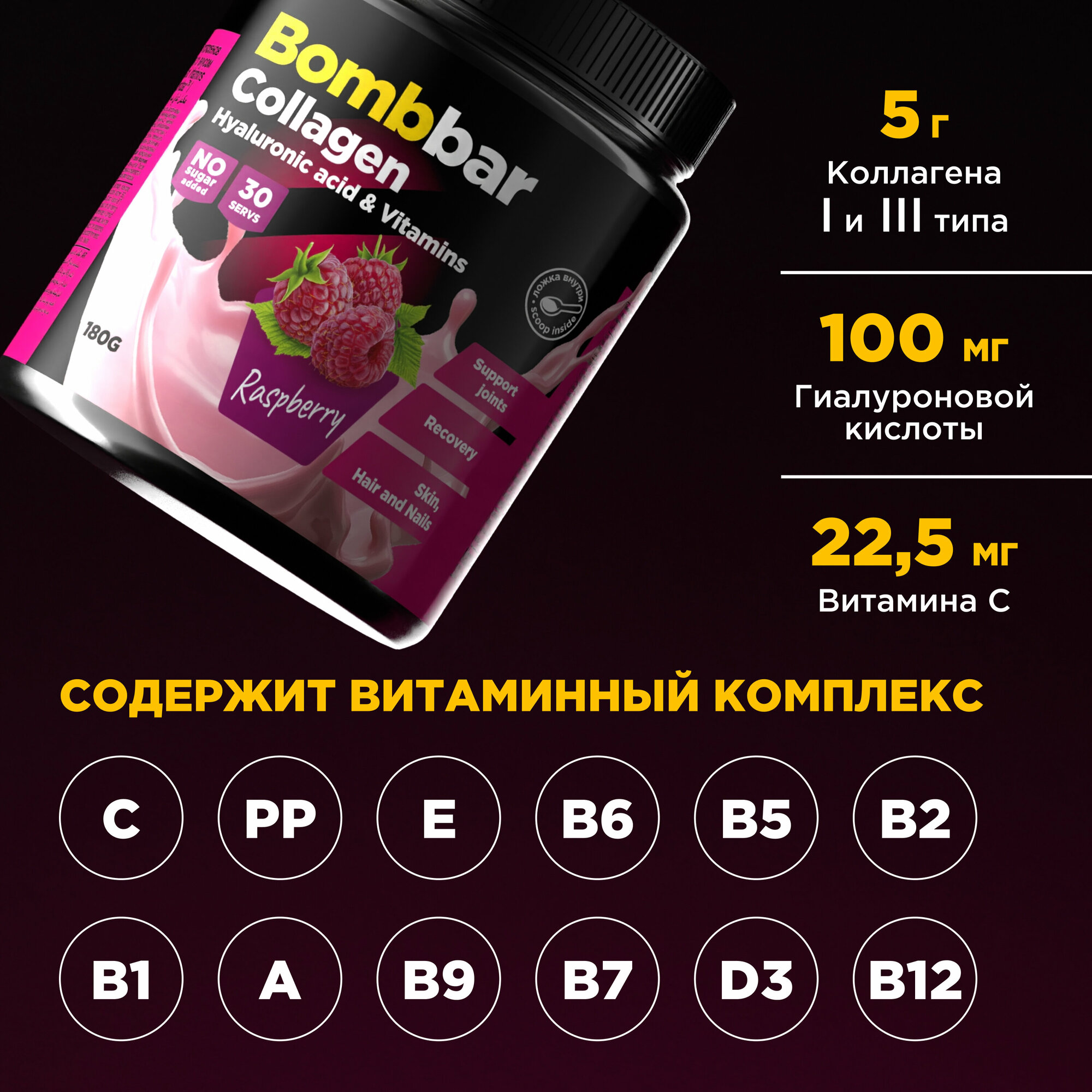 Bombbar Pro Collagen Коктейль без сахара Коллаген + Гиалуроновая кислота + Витамины, порошок 180г интересное: