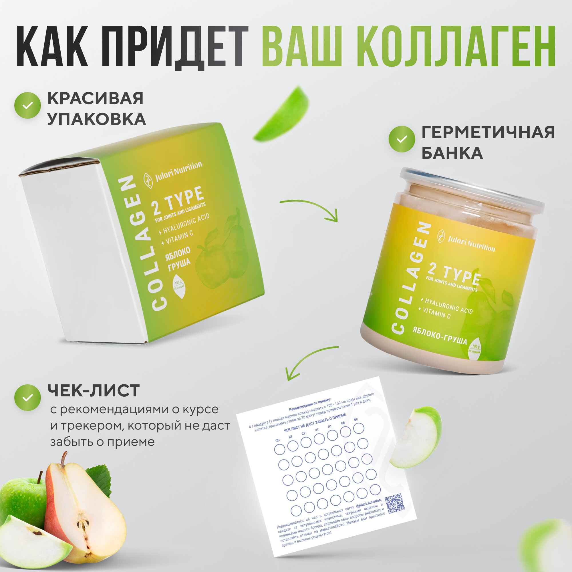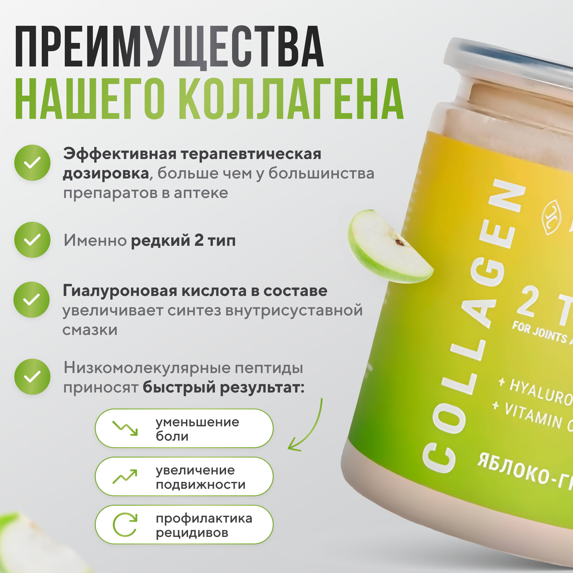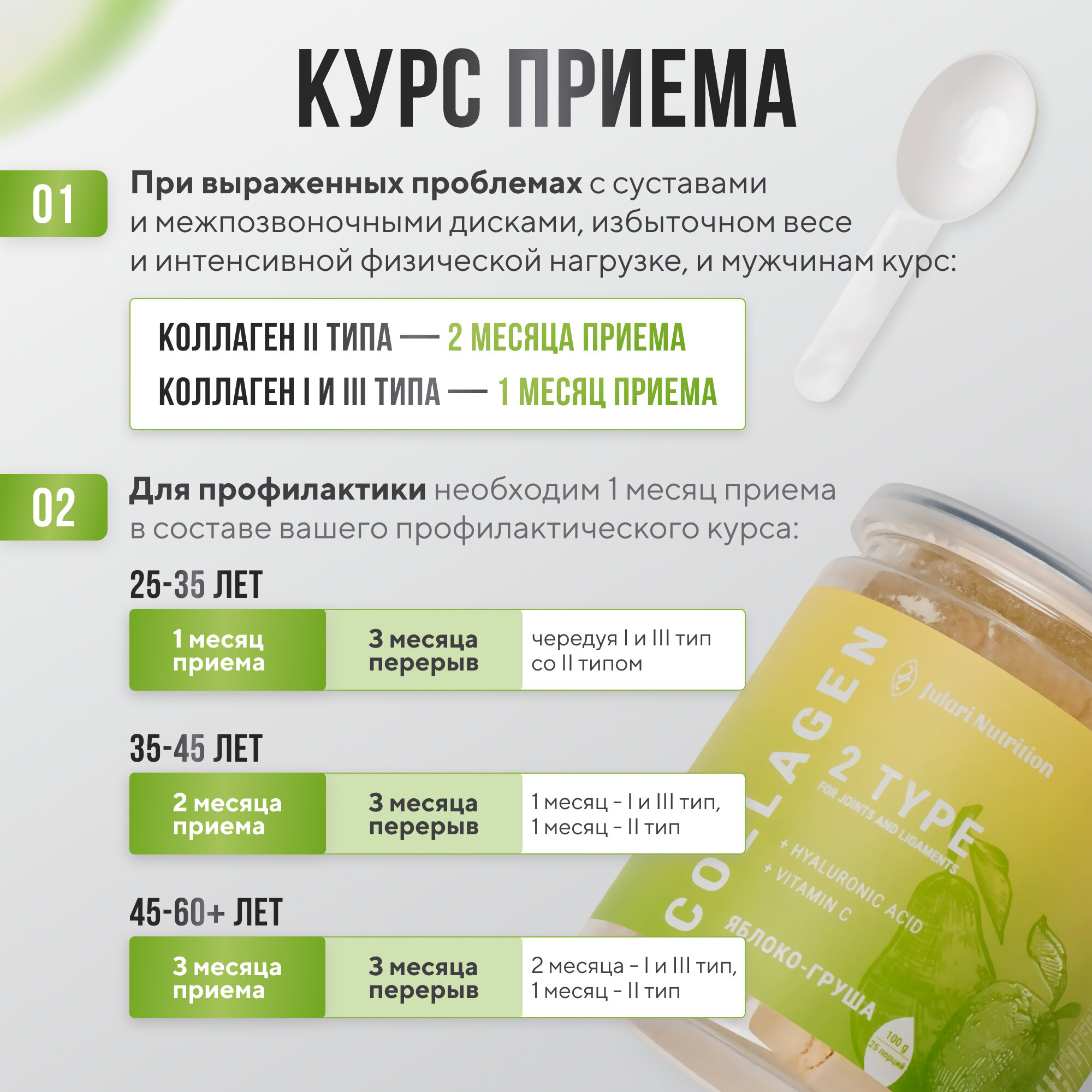 Гидролизованный коллаген 2 типа для суставов, 25 порций, 100 гр, вкус яблоко груша