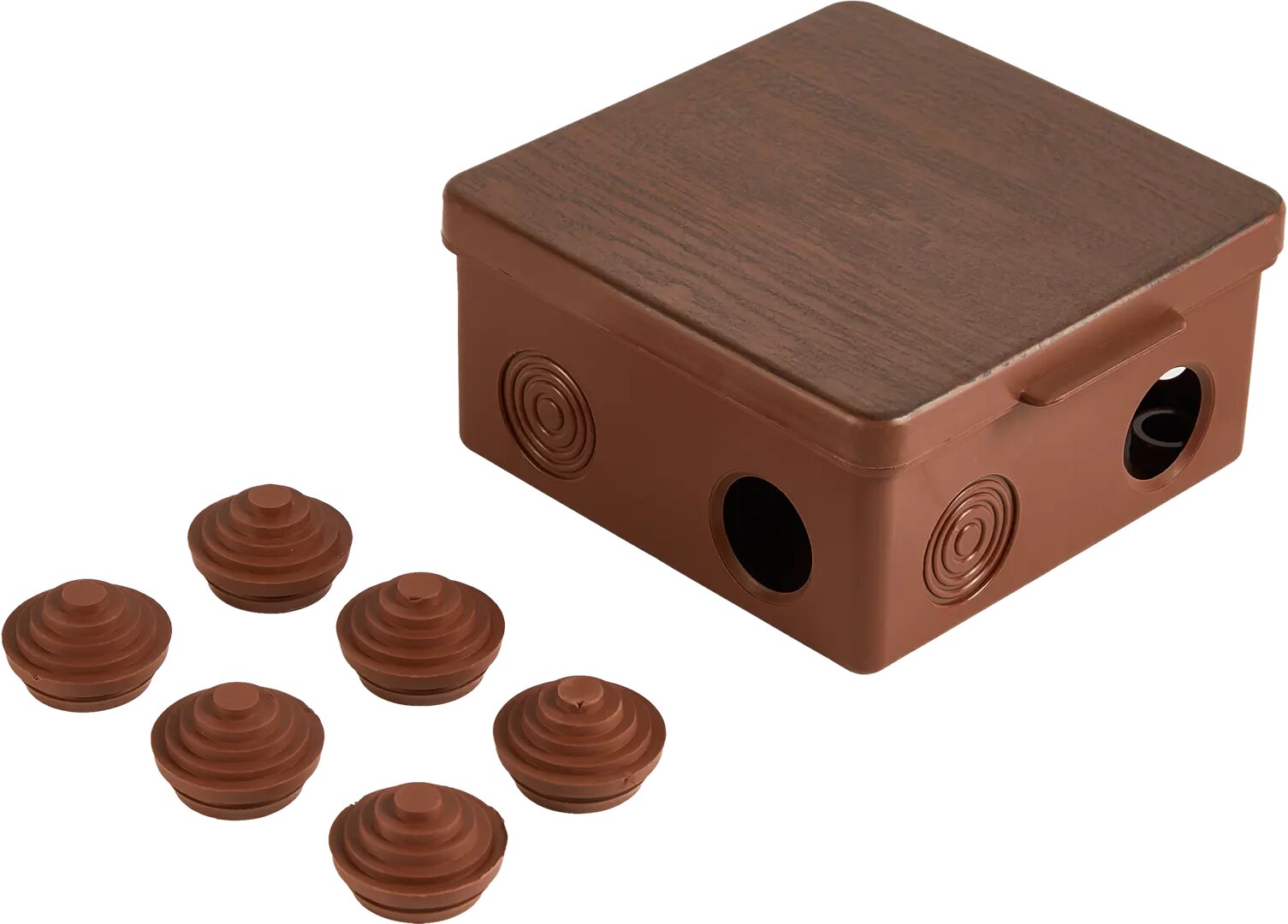 Купить Распаячная коробка ОП 100х100х55мм, крышка, "ЭКО" (венге), IP54, 8вх. инд. штрихкод TDM SQ1401-0613