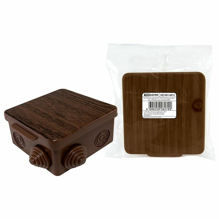 Распаячная коробка ОП 100х100х55мм, крышка, "ЭКО" (венге), IP54, 8вх. инд. штрихкод TDM SQ1401-0613 интересное: