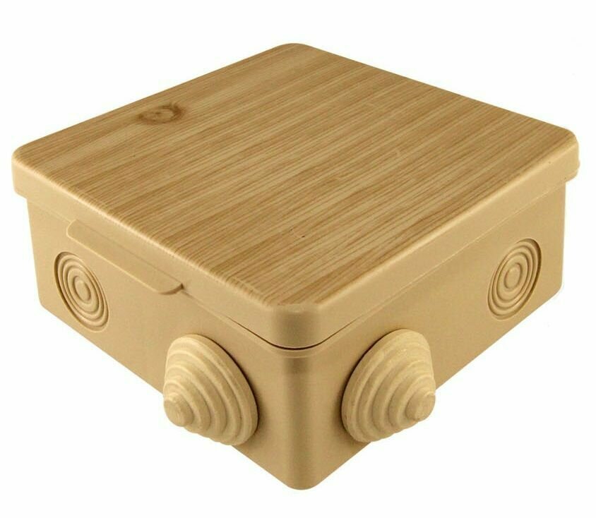 Купить Коробка распределительная 100х100х50мм монтажная для открытой проводки с крышкой наружная квадратная цвет сосна