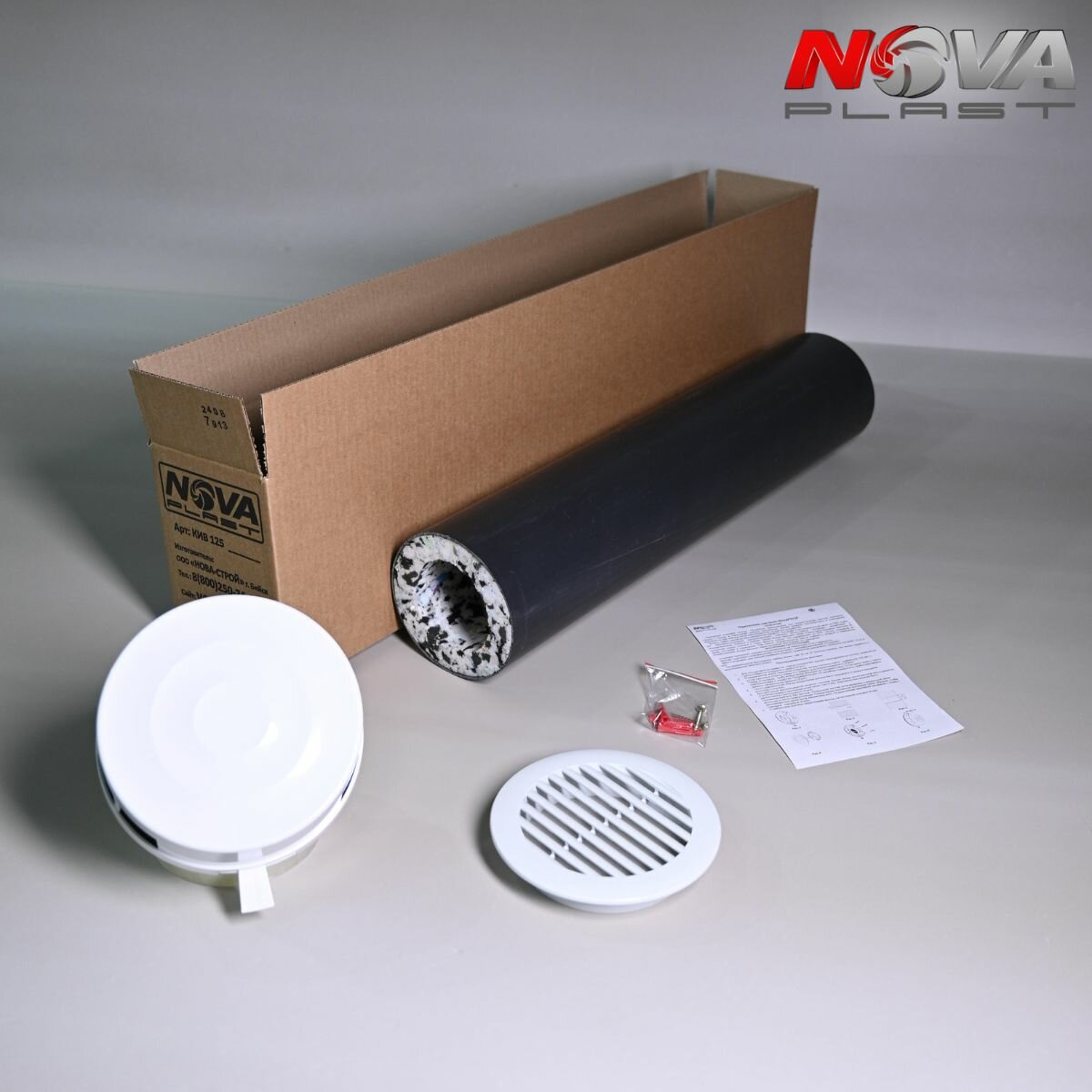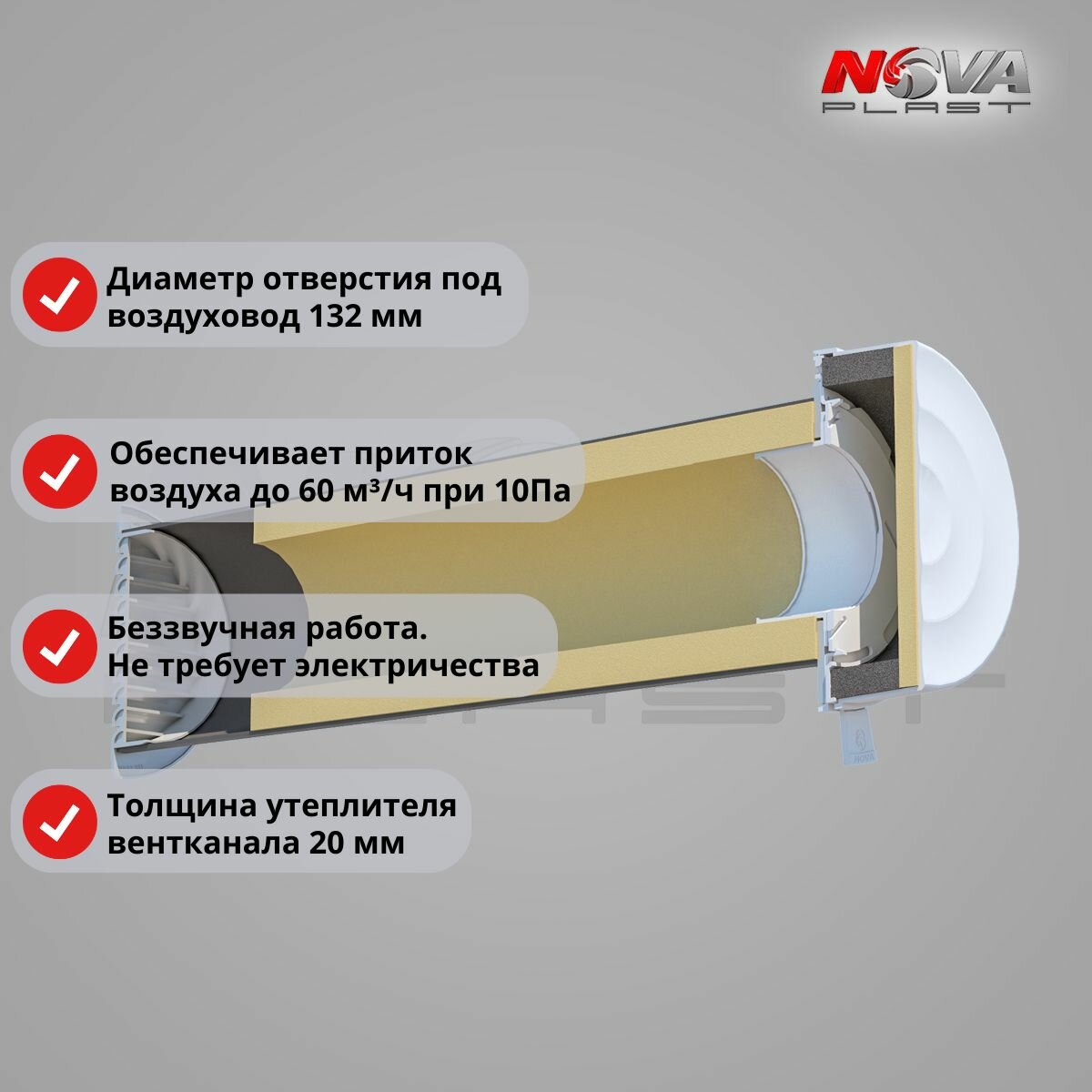 Приточный клапан вентиляции NovaPROF с 600 мм трубой, атмосферостойкой решеткой кив - 125, RAL 9016 интересное: