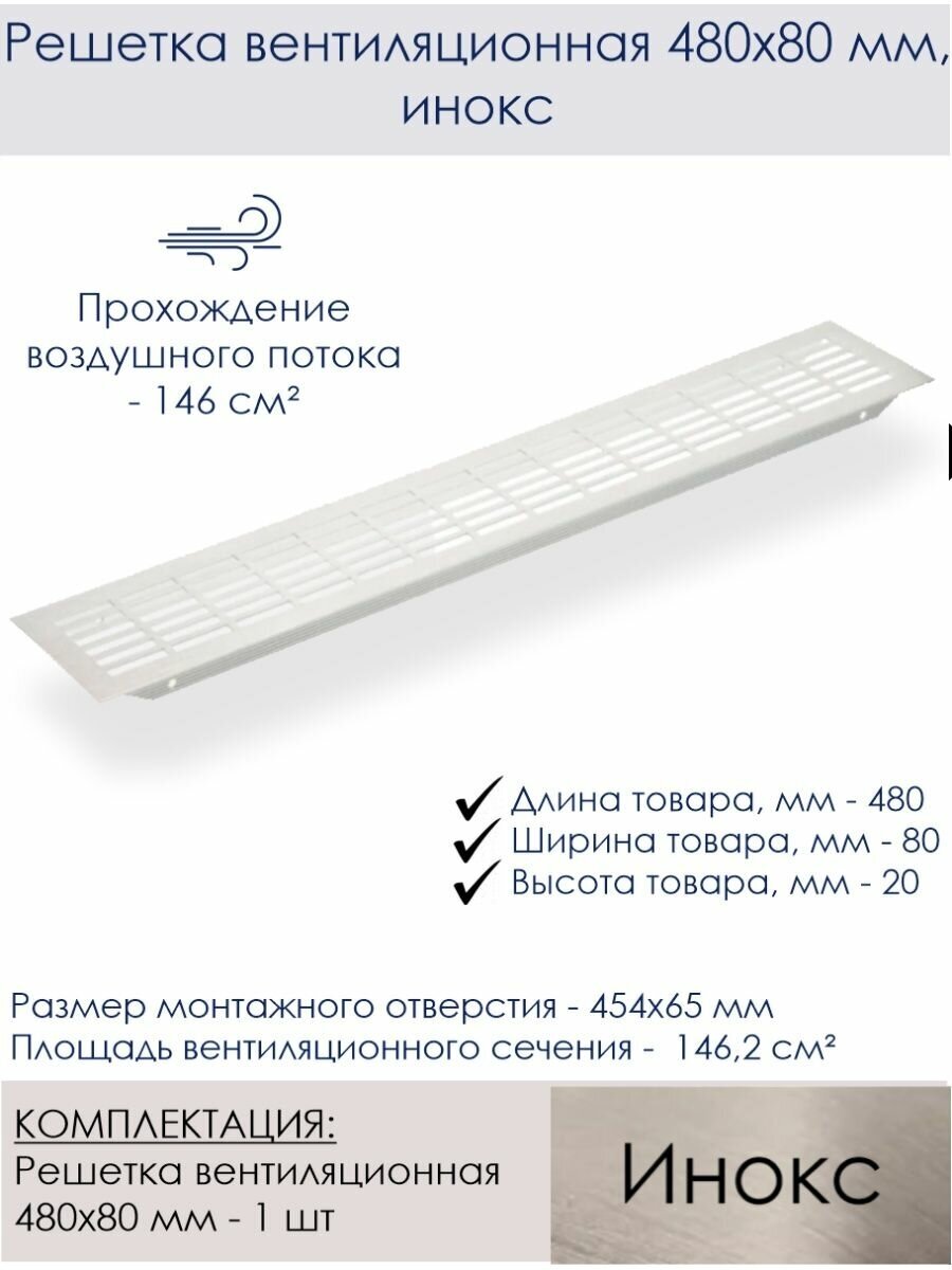 Ниже Вы можете прочитать отзывы на Решетка вентиляционная 480х80 мм, инокс, ознакомится с подробными характеристиками, посмотреть интересные обзоры и фотографии на Решетка вентиляционная 480х80 мм, инокс.
