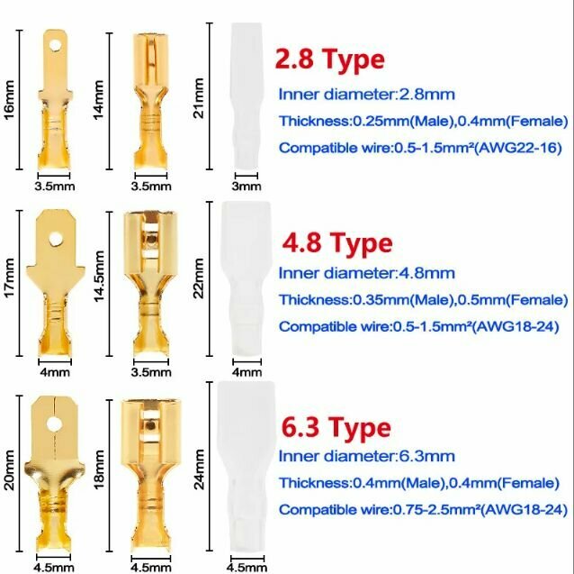 Обжимные клеммы для проводов с изоляцией 180 шт. 2,8 мм 4,8 мм 6,3 мм, интересное: