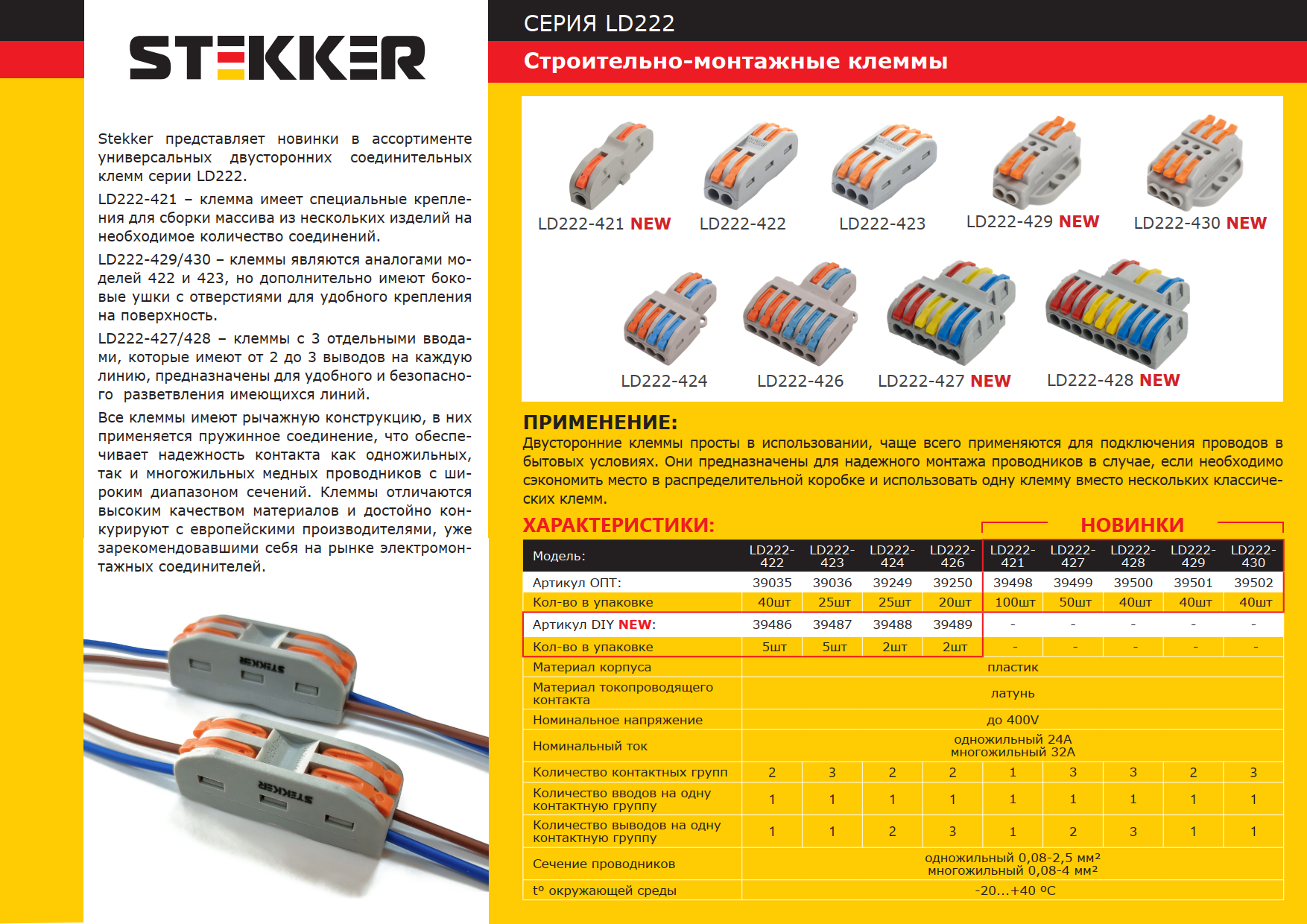 Клемма монтажная для фазных проводников, 3 контактные группы, LD222-428 3 штуки интересное: