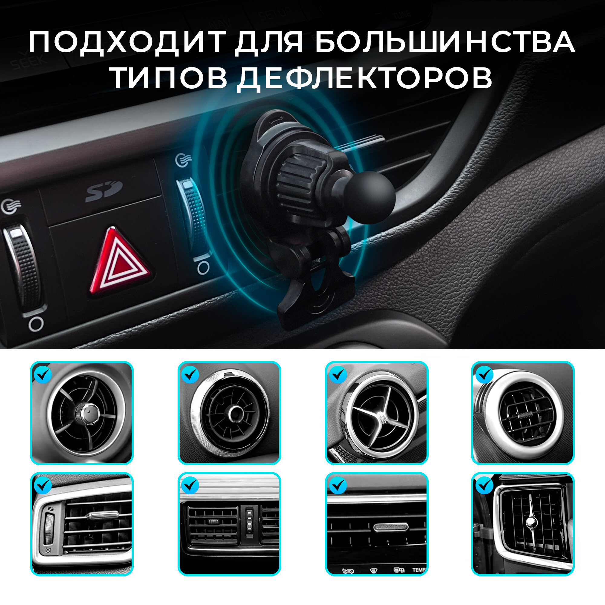 Ножка для автодержателя в вентиляционную решетку, WALKER, CX-133, с упором, держатель на дефлектор, держатель для телефона в машину с крючком, черная интересное: